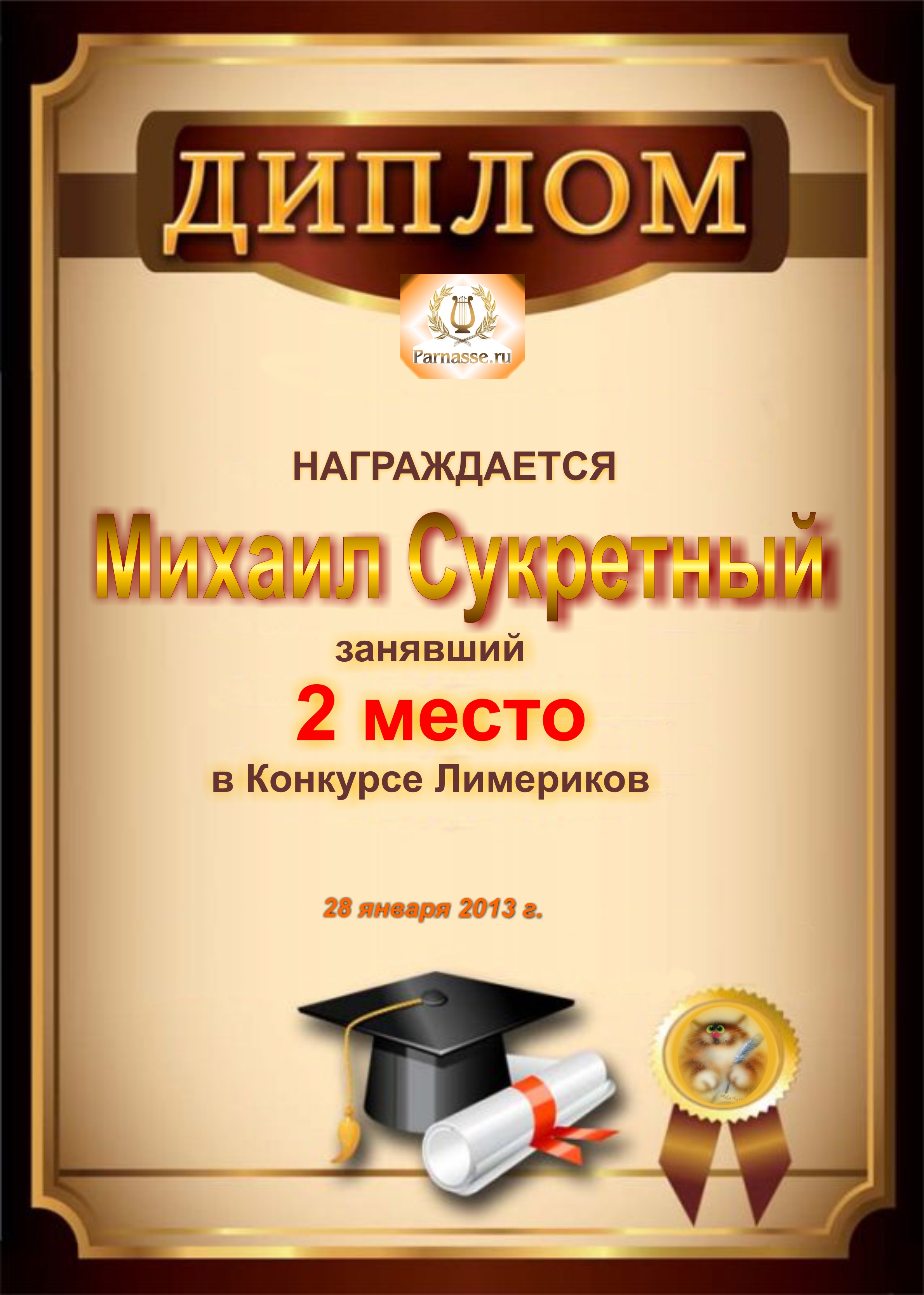 За второе место в конкурсе лимериков №29+! Поздравляем с победой в конкурсе!