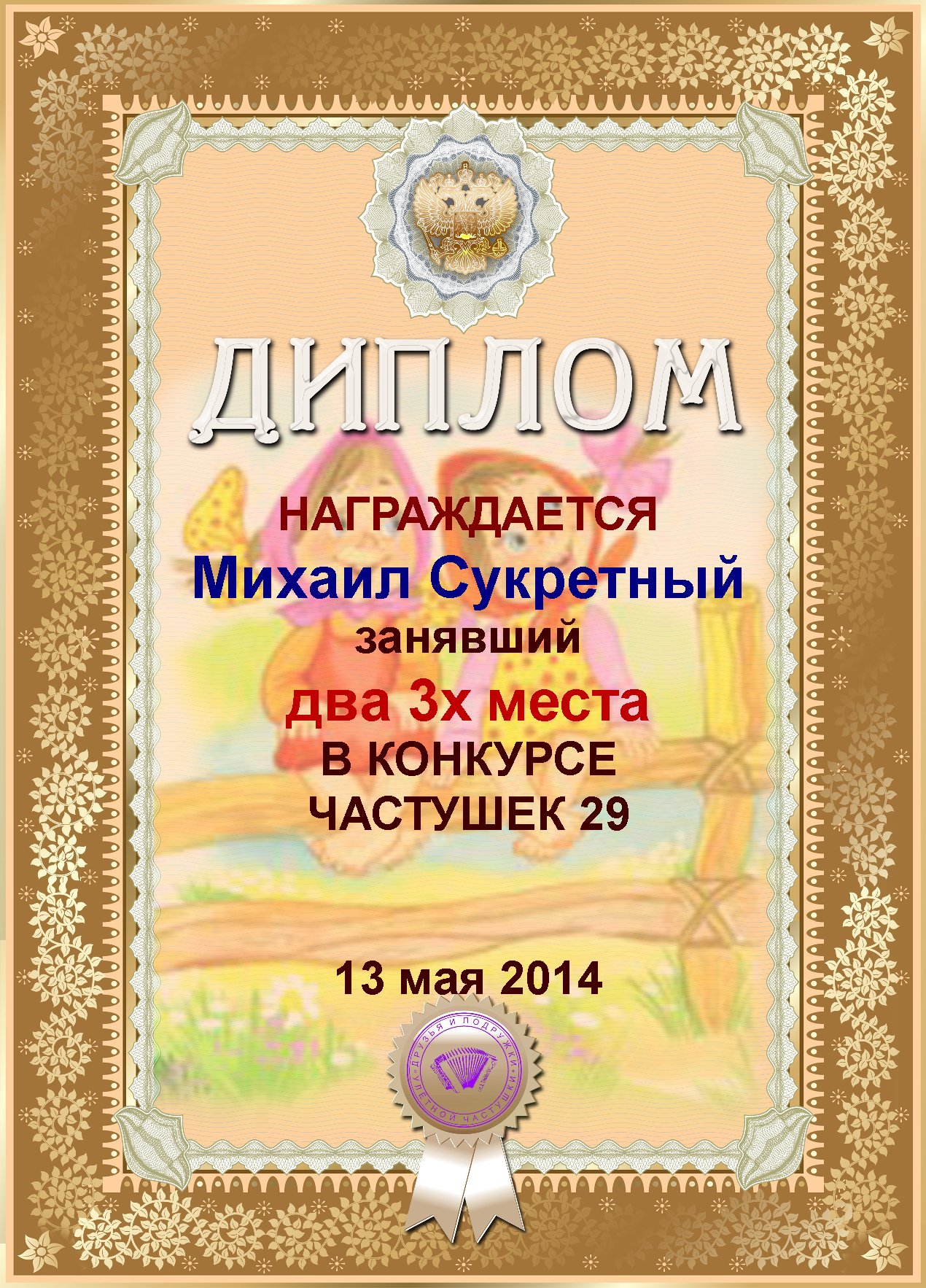 за 3е место в конкурсе частушек №37