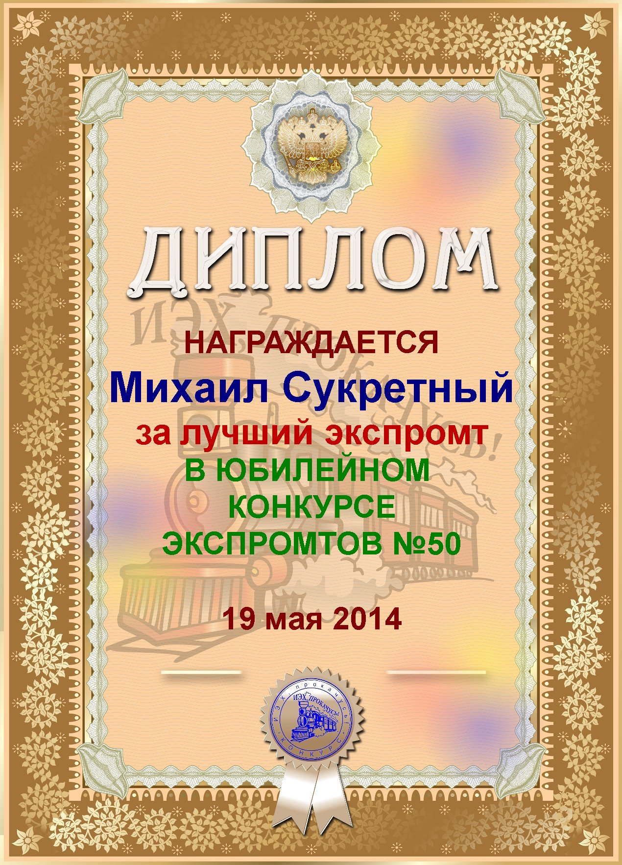 ПОЗДРАВЛЯЕМ С ЛУЧШИМ ЭКСПРОМТОМ В КОНКУРСЕ №8, Михаил!