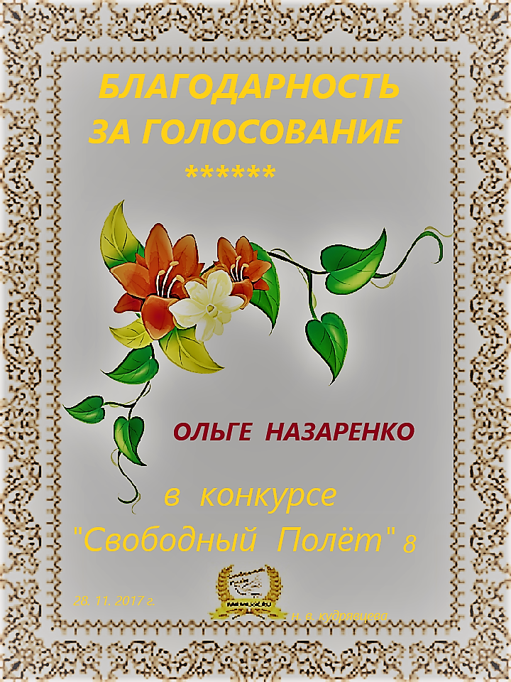 За поэтическое мастерство и высокий профессионализм в конкурсном произведении «Лю-боль»! Поздравляем!!!