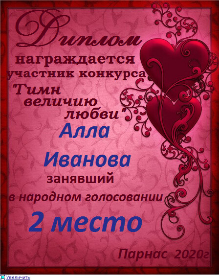Второе место по итогам конкурса " Любовь – возвышенное чувство", народное голосование. Поздравляем с прекрасной победой!
