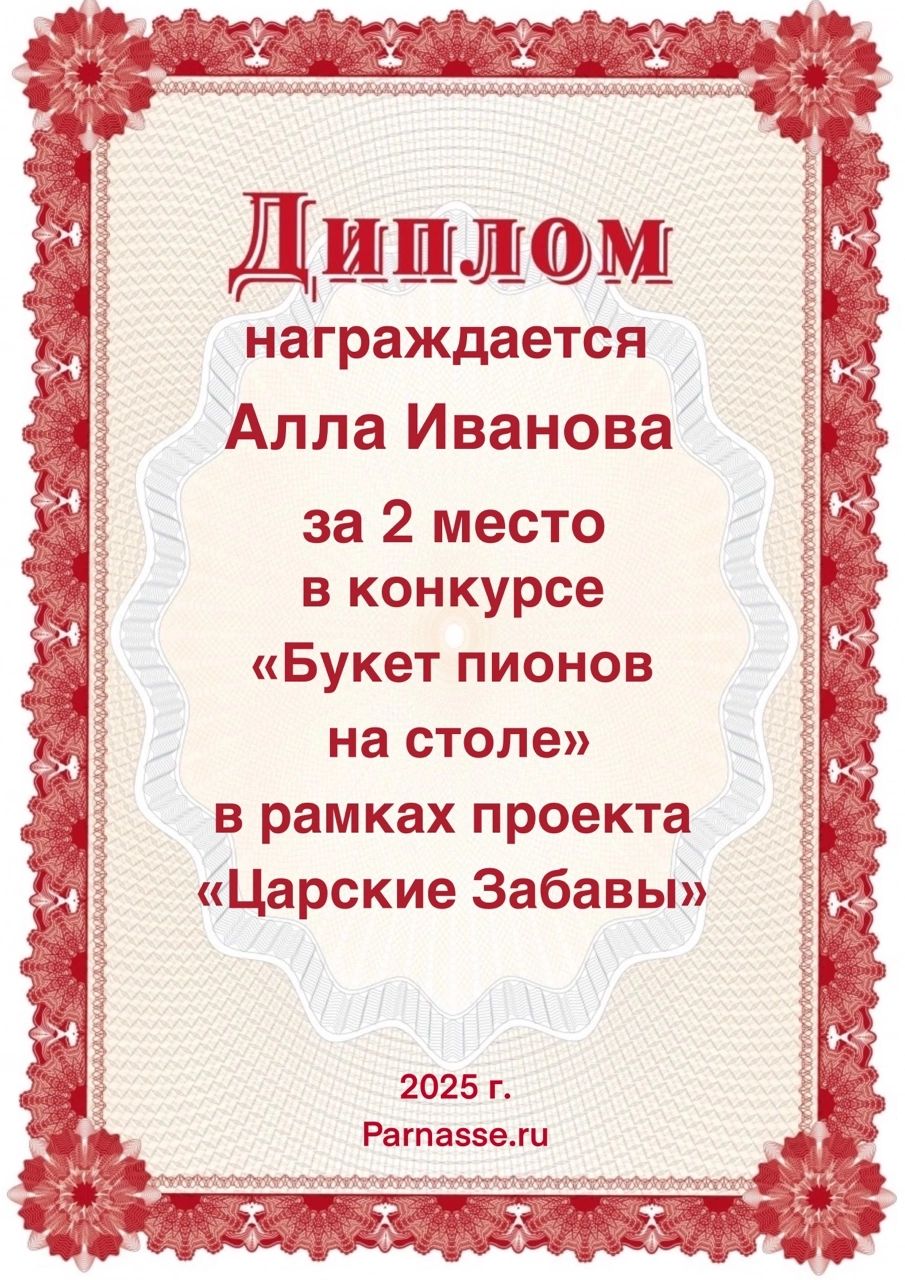 2 место в конкурсе "Пионовое чудо".в рамках проекта "Царские Забавы". Поздравляем!