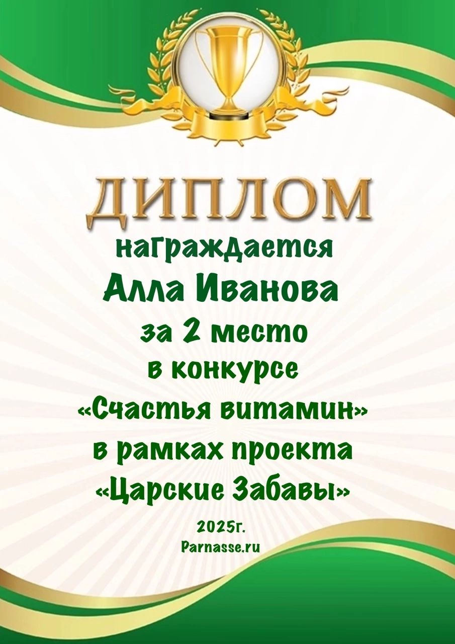 2 место в конкурсе "Счастья витамин". Поздравляем!