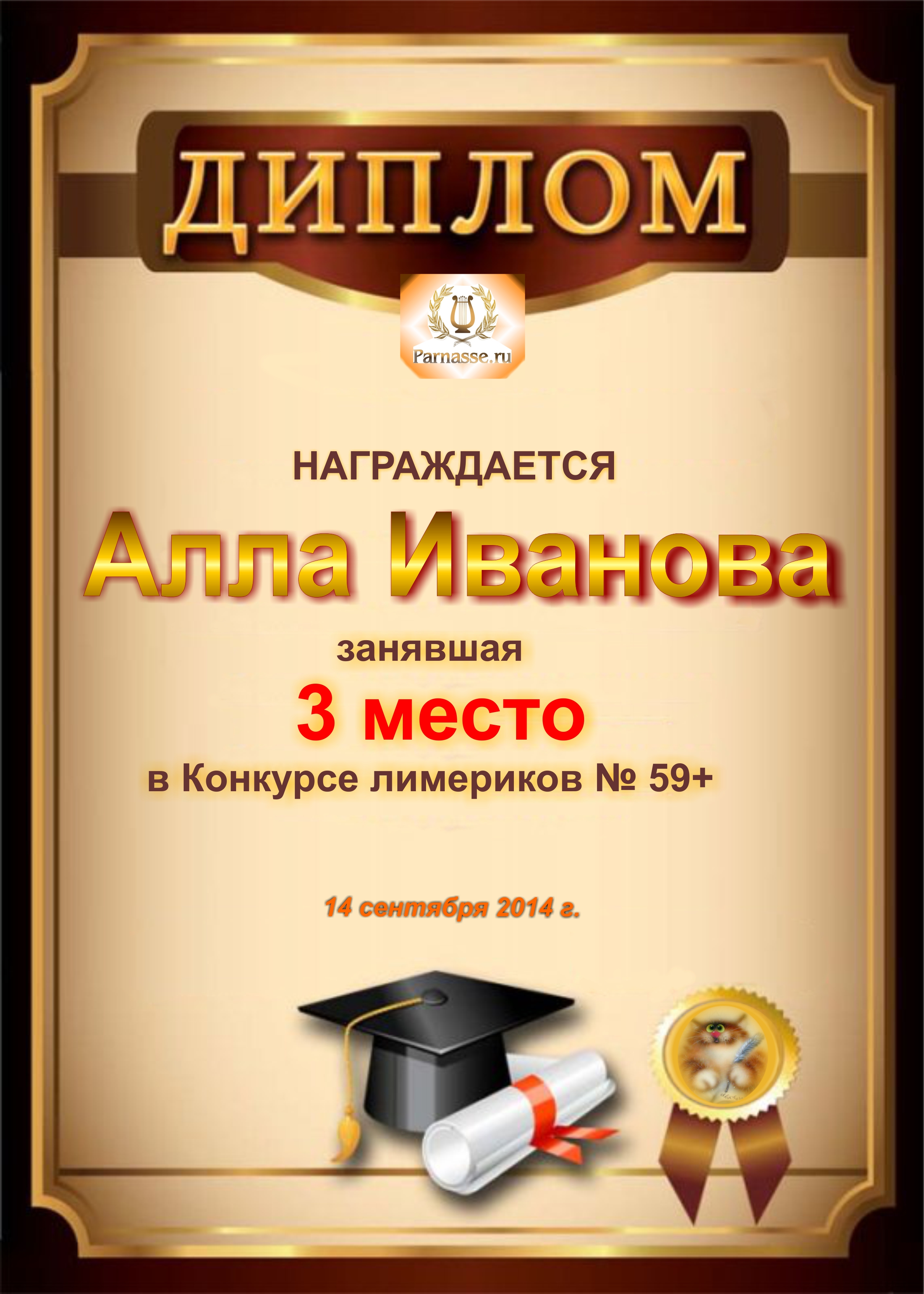 Диплом за победу и 3 место в дополнительной номинации конкурса лимериков № 41+ (9.09.2013г.)