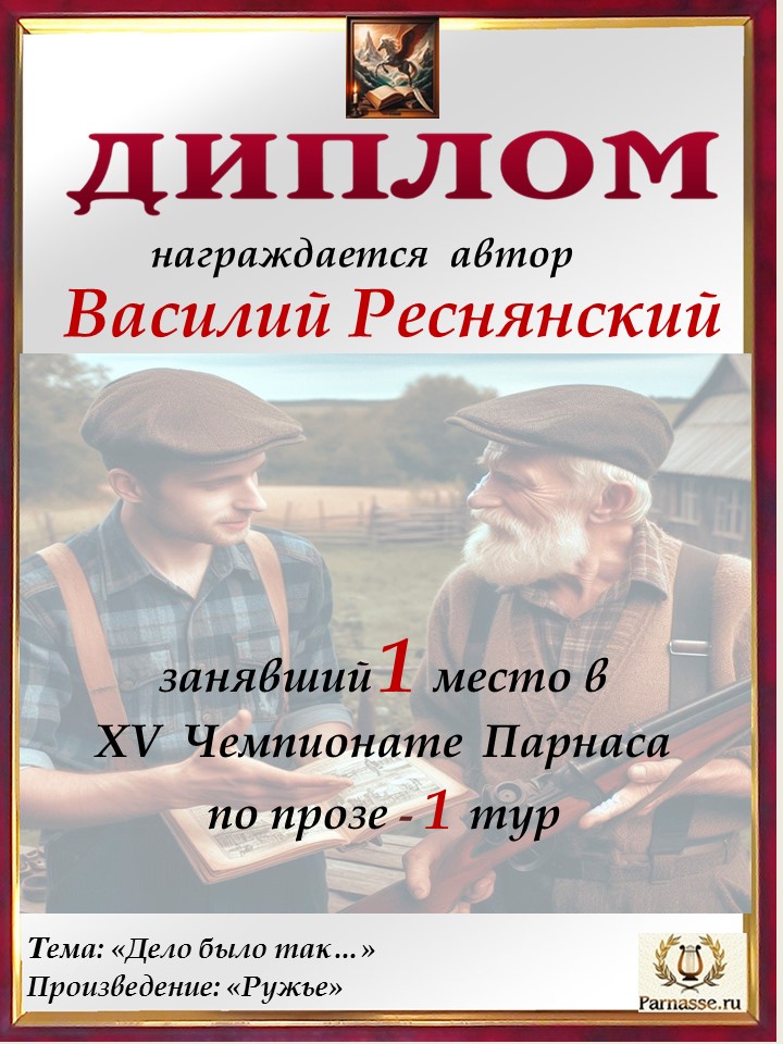 Поздравляю с занятым 1 местом в 6 туре XV Чемпионата Парнаса по прозе!
