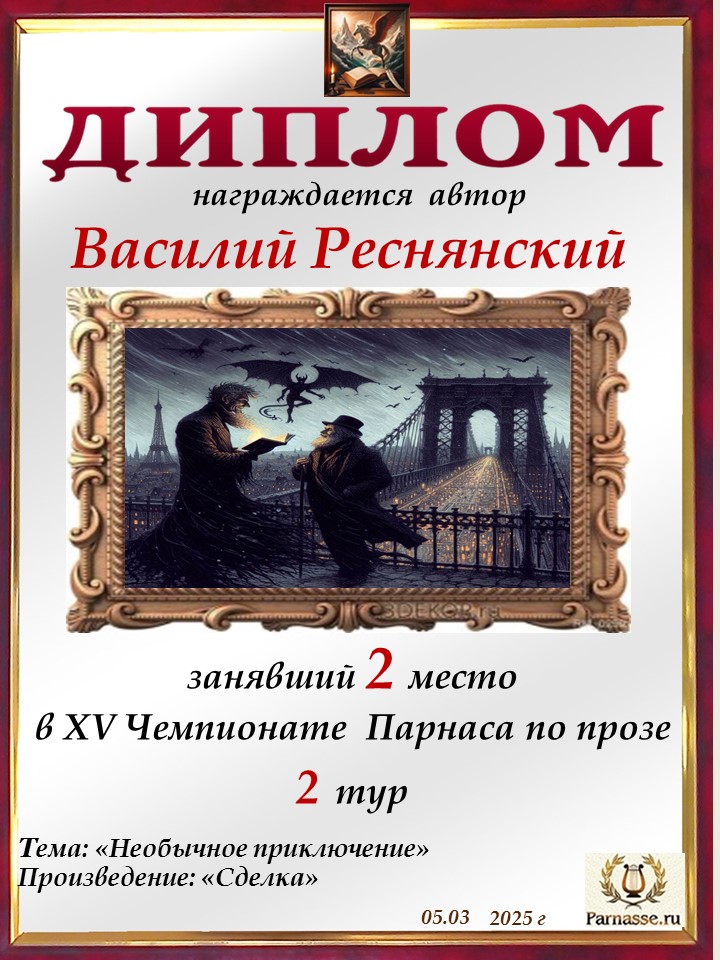 Поздравляю с занятым 2 местом в 11 туре XV Чемпионата Парнаса по прозе!