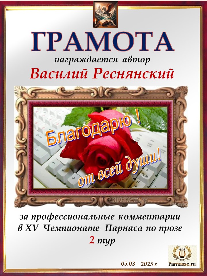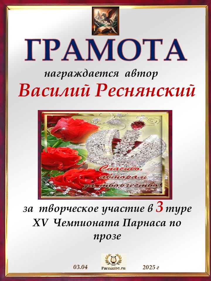 Спасибо за творческое участие в 3 туре XV Чемпионата Парнаса по прозе!