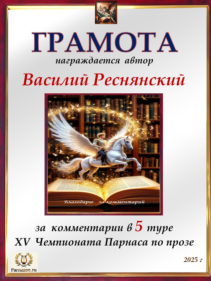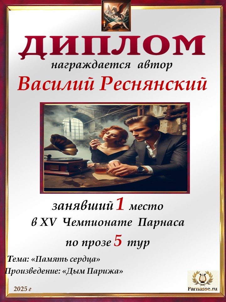 Поздравляю с занятым 1 местом в 5 туре XV Чемпионата Парнаса по прозе!