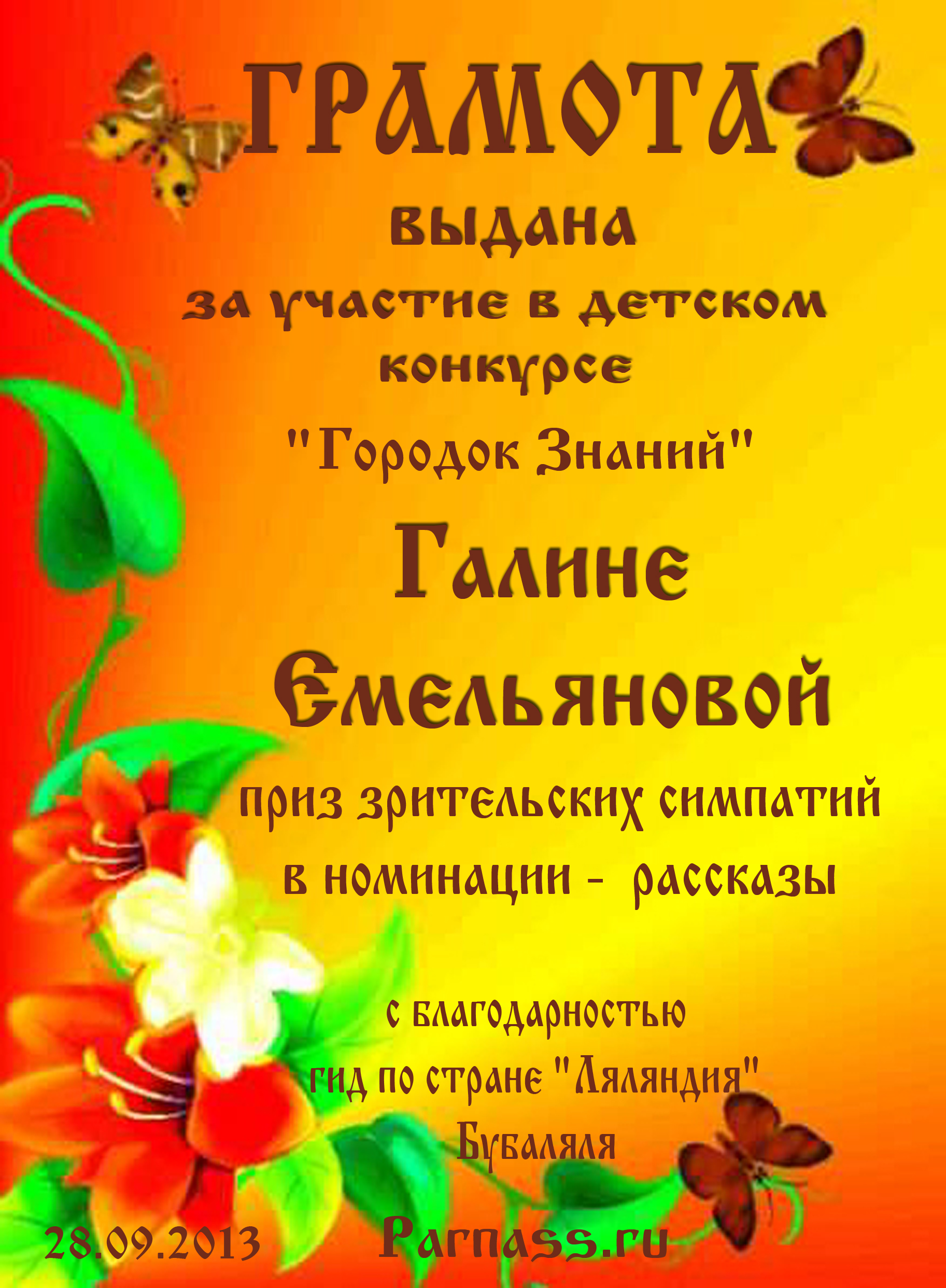 ![]() ![]() Золотой Кубок «Гордость Парнаса»!