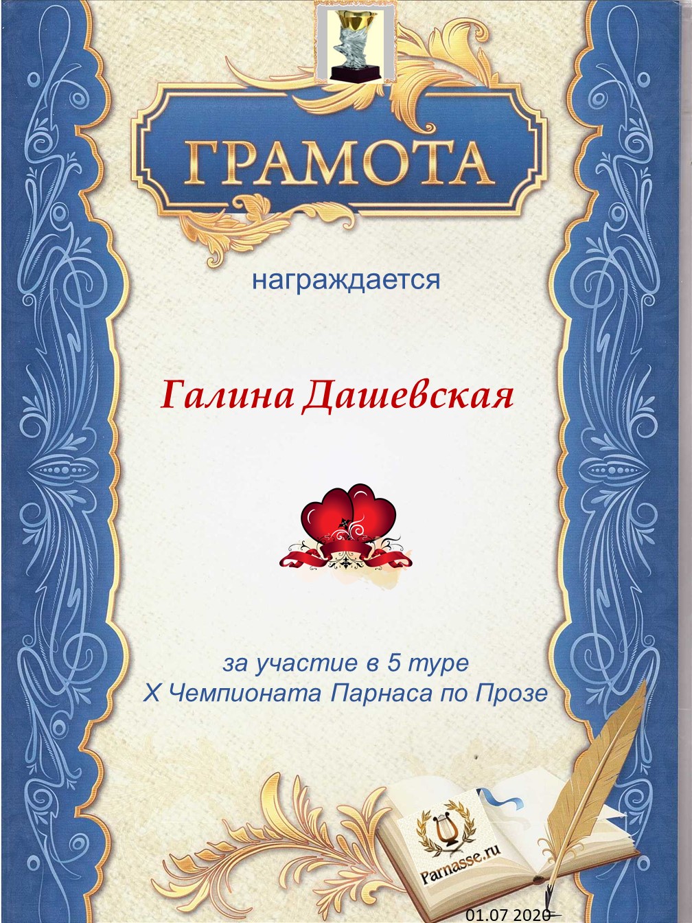 Грамота участника голосования в конкурсе № 5.