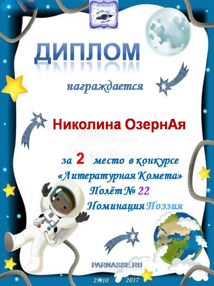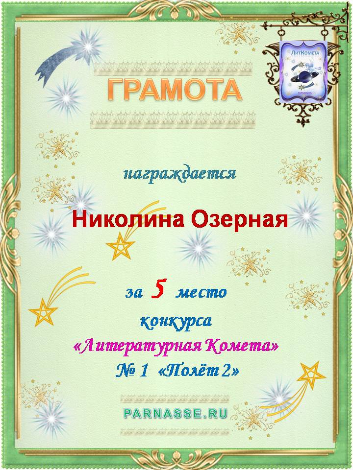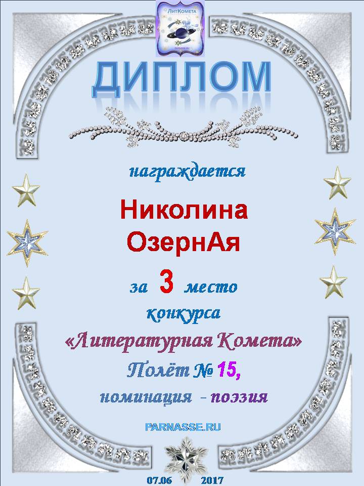 За 1 место в конкурсе "Литературная Комета - Полёт № 34" - поэзия