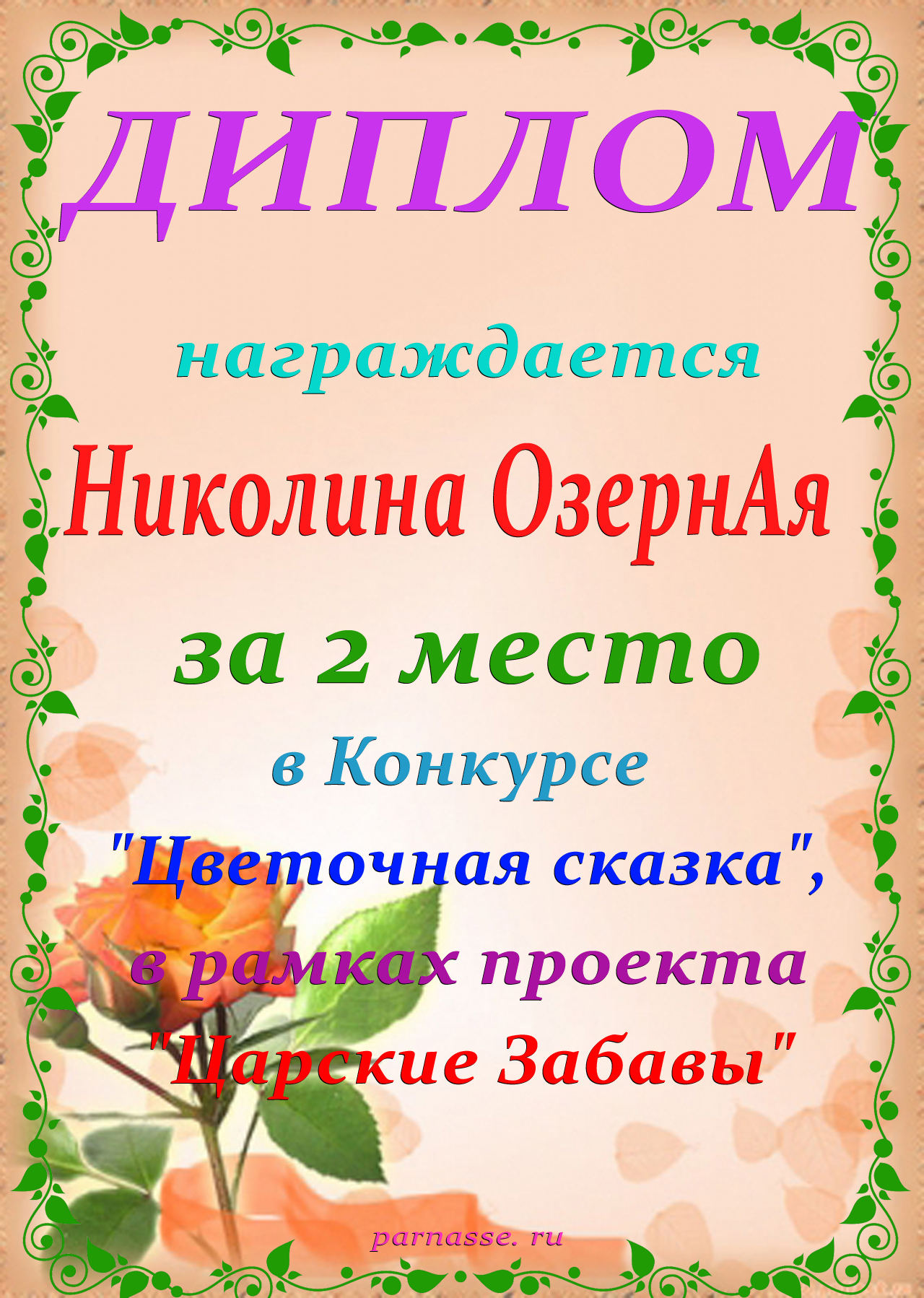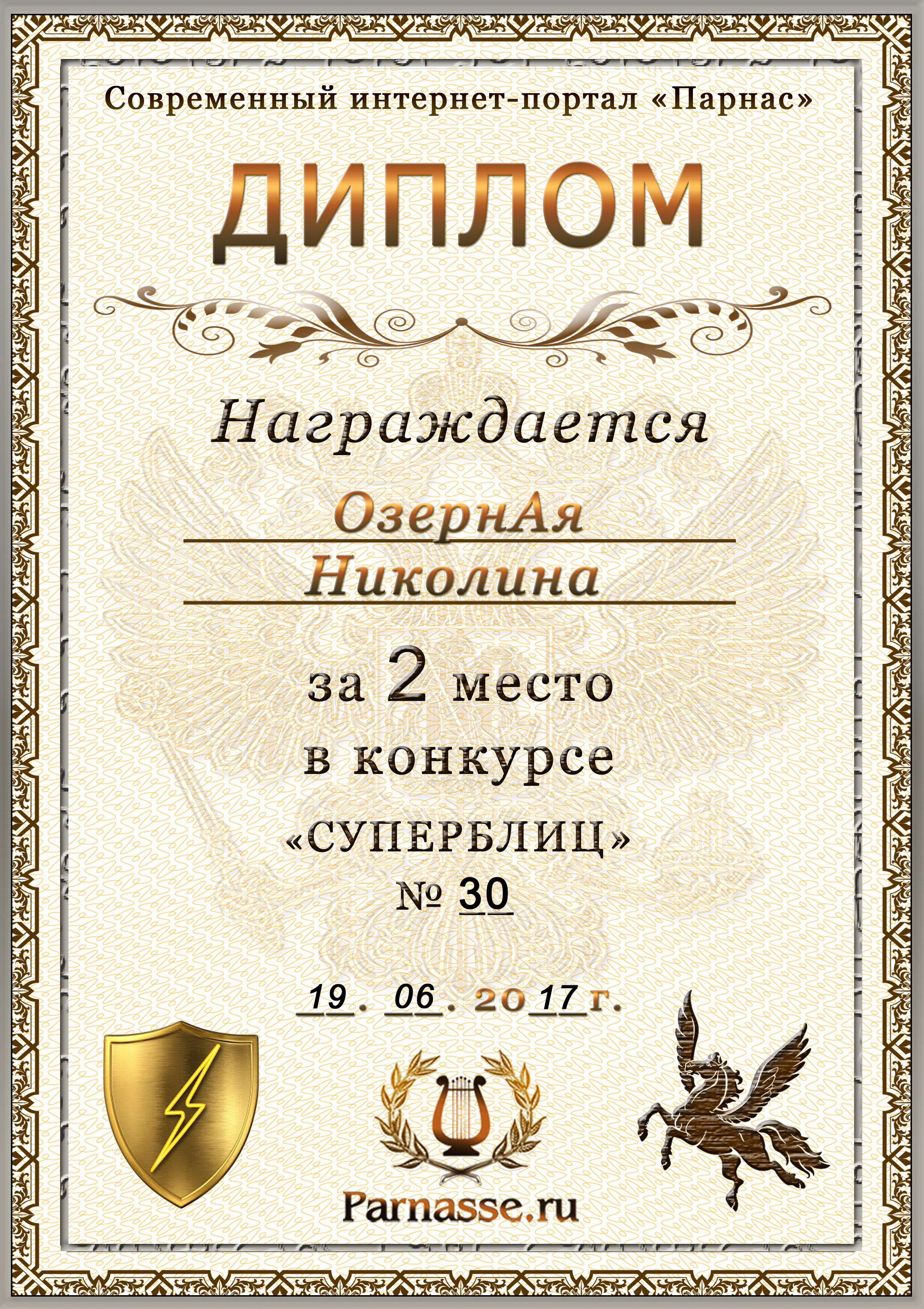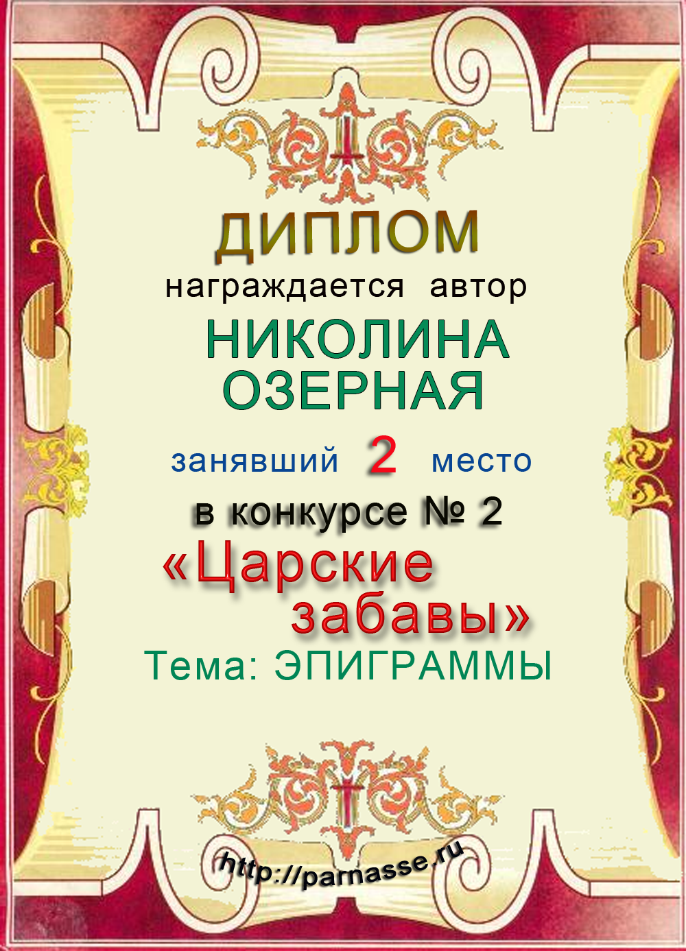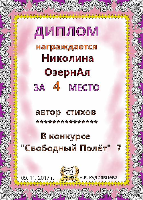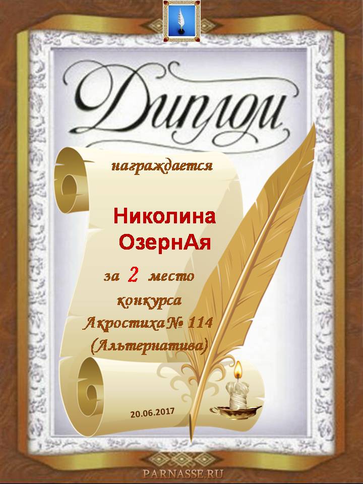 Диплом за 2 место в 114 конкурсе АКРОСТИХА (Альтернатива)! ПОЗДРАВЛЯЮ!