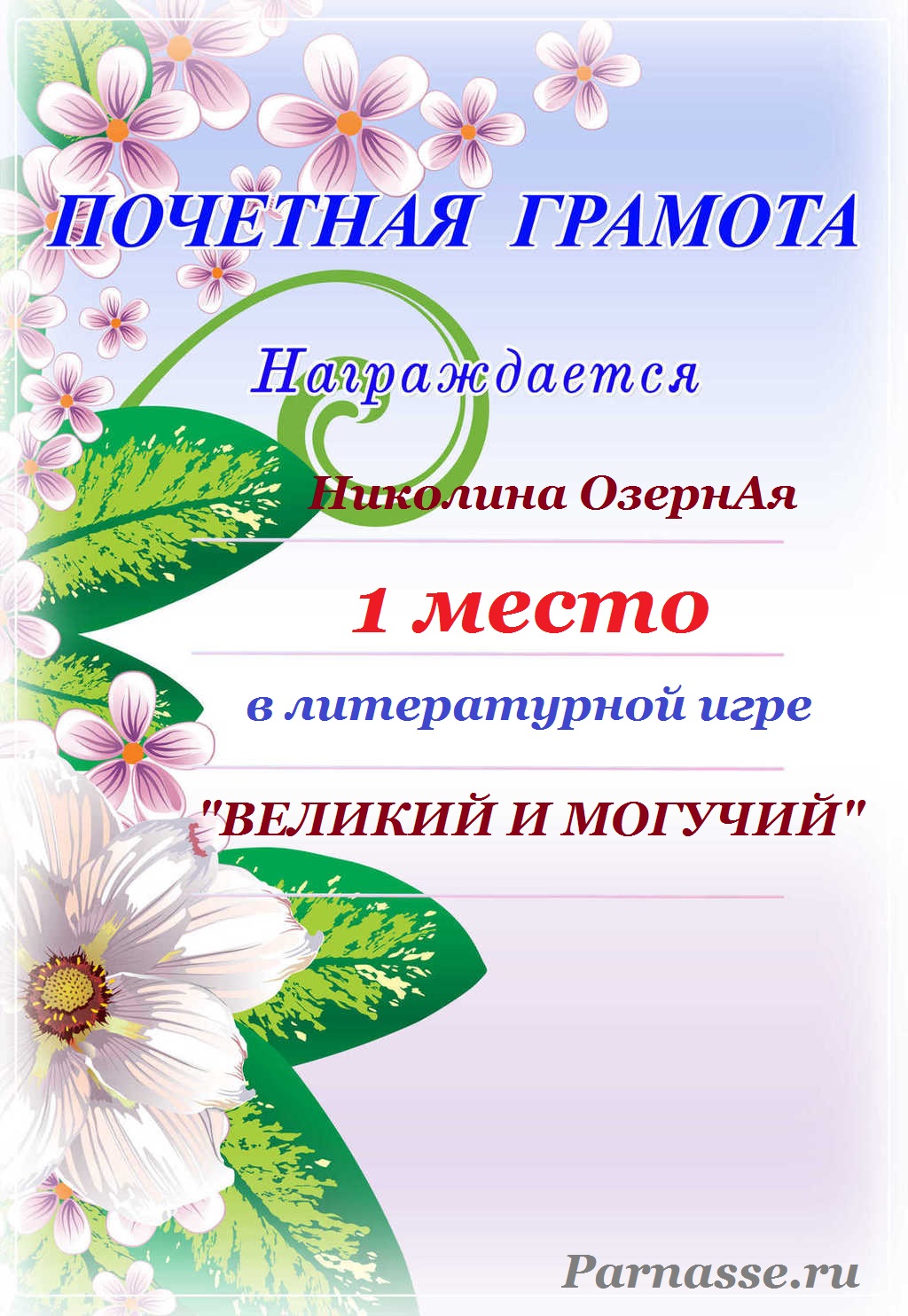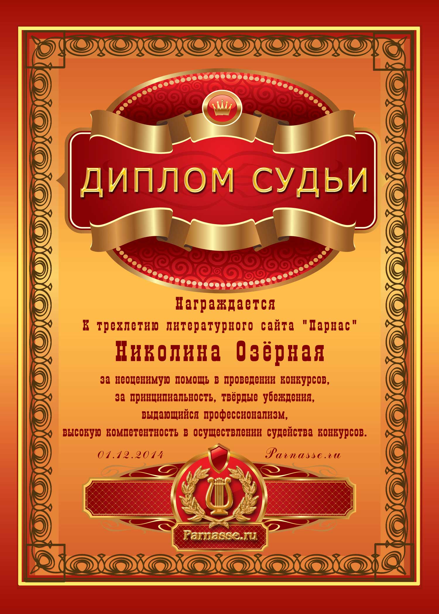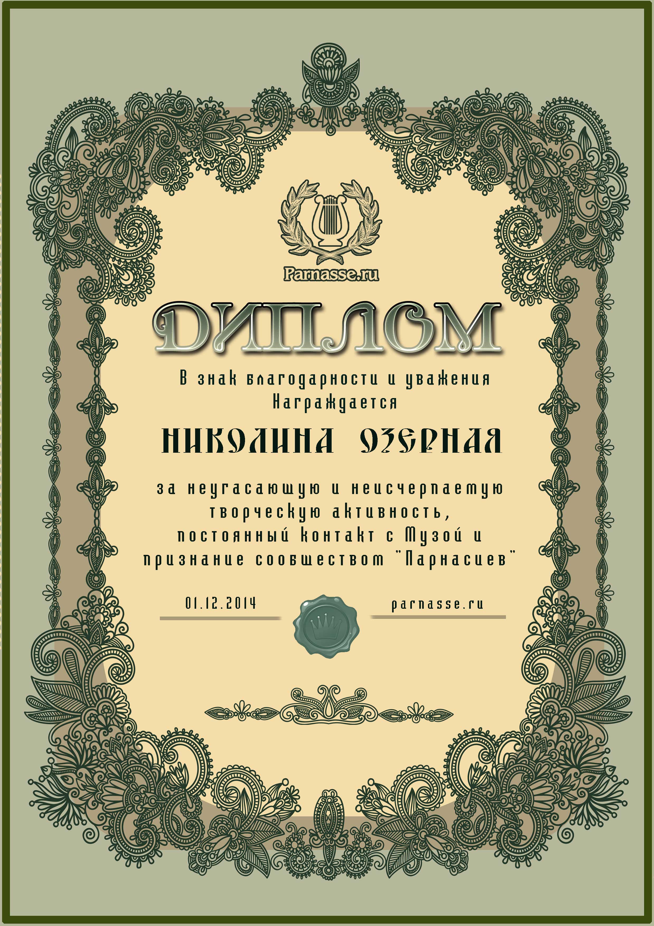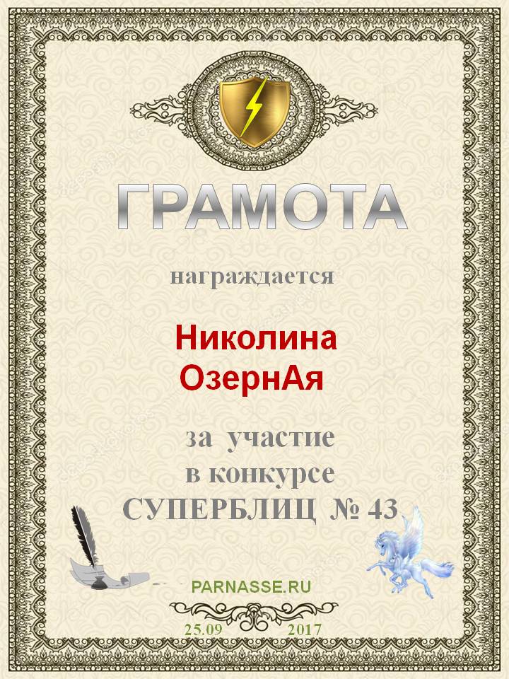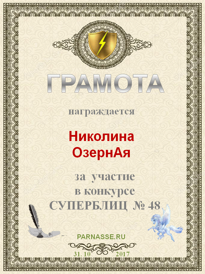 За неугасающую и неисчерпаемую творческую активность, постоянный контакт с Музой и признание сообществом "Парнасцев".От всей души желаем Вам, Николина, здоровья, любви, успехов, благополучия, удачи и творческого вдохновения!