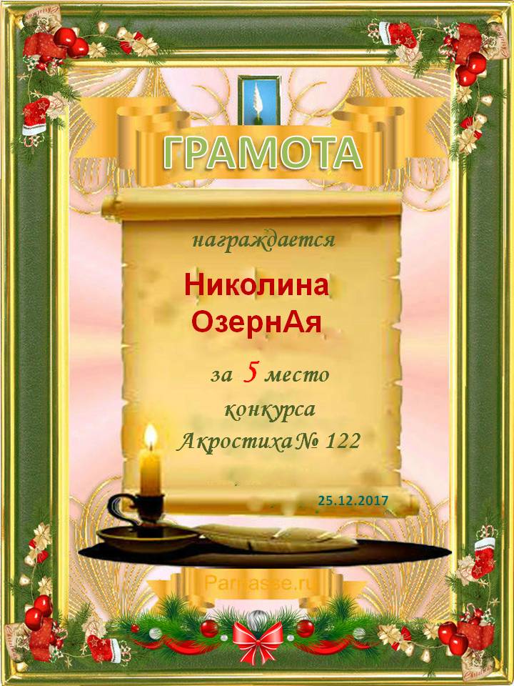 Грамота за 5 место в 117 конкурсе АКРОСТИХА (Альтернатива)! ПОЗДРАВЛЯЮ!