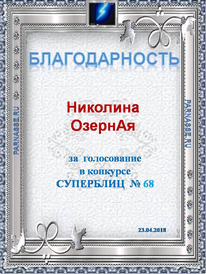 Благодарность за активное голосование в 68 конкурсе СУПЕРБЛИЦА!СПАСИБО БОЛЬШОЕ!