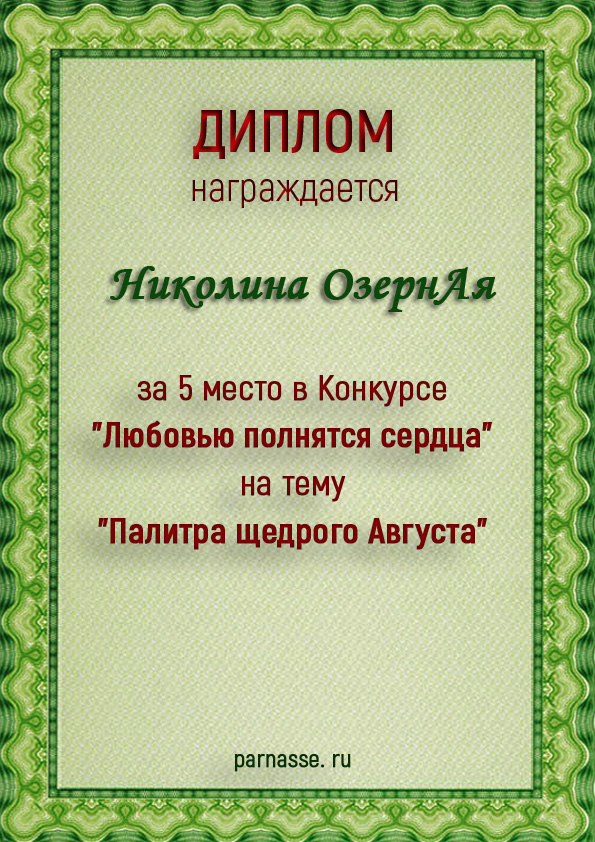 За 5 место в Конкурсе "Любовью полнятся сердца" на тему "Палитра щедрого Августа"