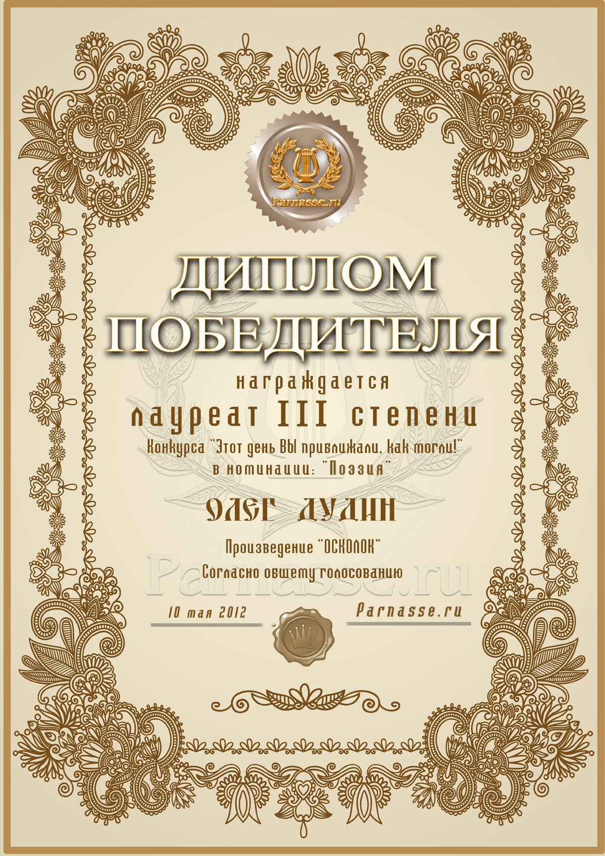 Диплом 3 степени