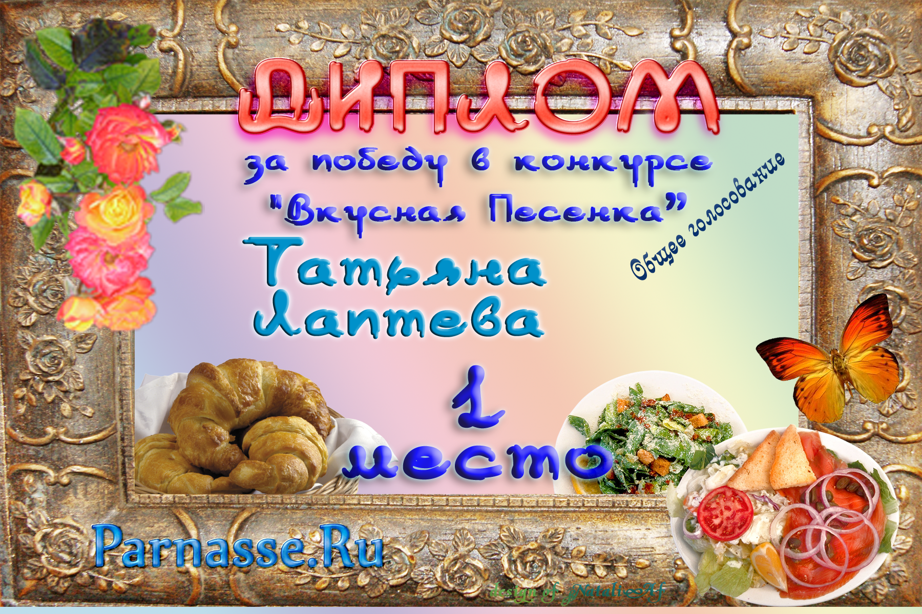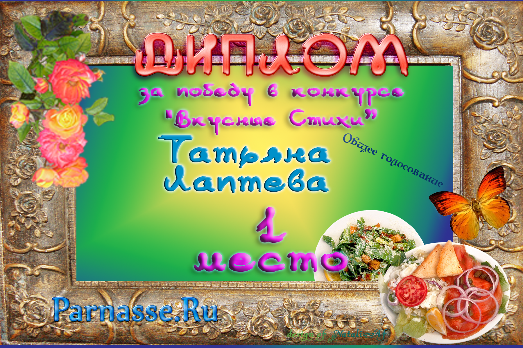 Уважаемая Татьяна!От всего сердца поздравляем Вас с блестящей ПОБЕДОЙ в номинации «Вкусная ПОЭЗИЯ», во "Вкусном конкурсе"
