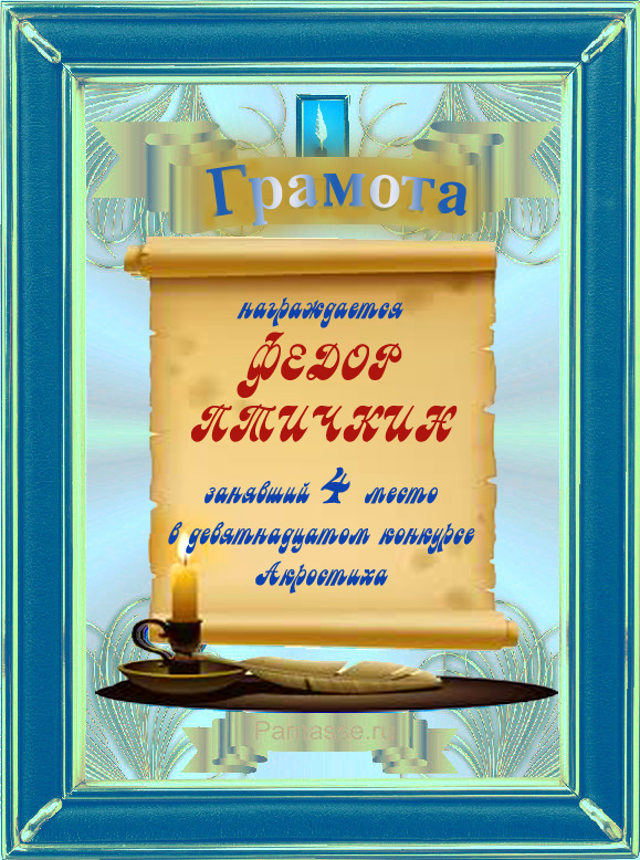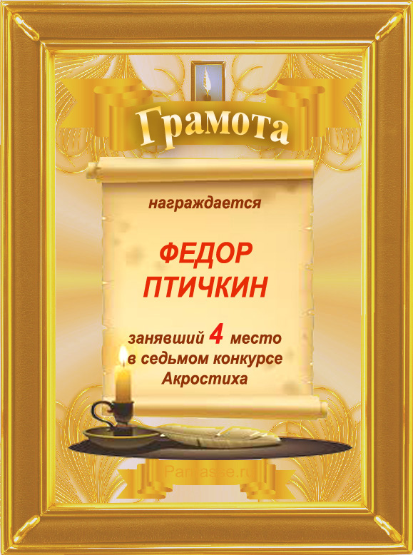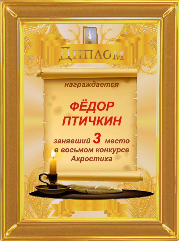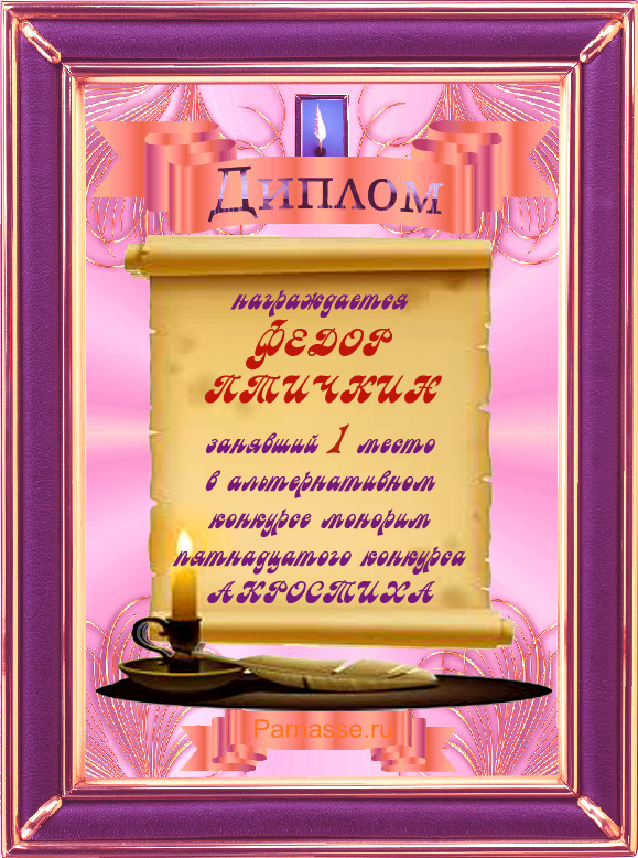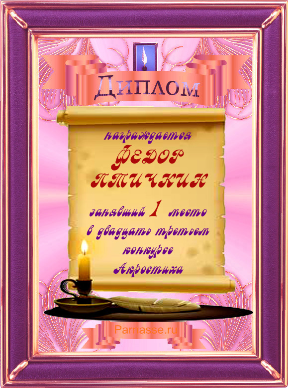 Диплом за 1 место в 29 конкурсе АКРОСТИХА (Дополнительная номинация "За сложность и оригинальность"! ПОЗДРАВЛЯЮ!
