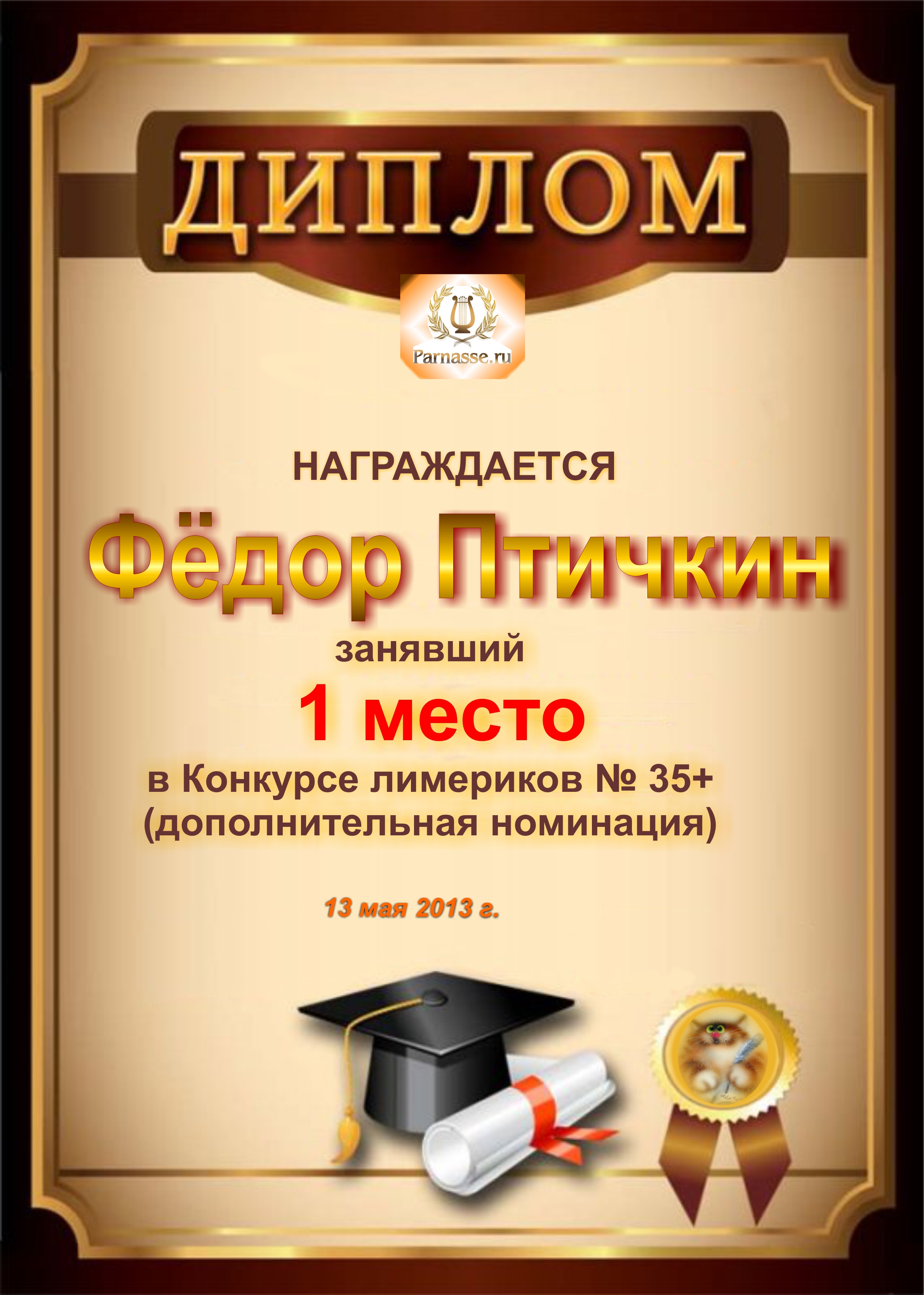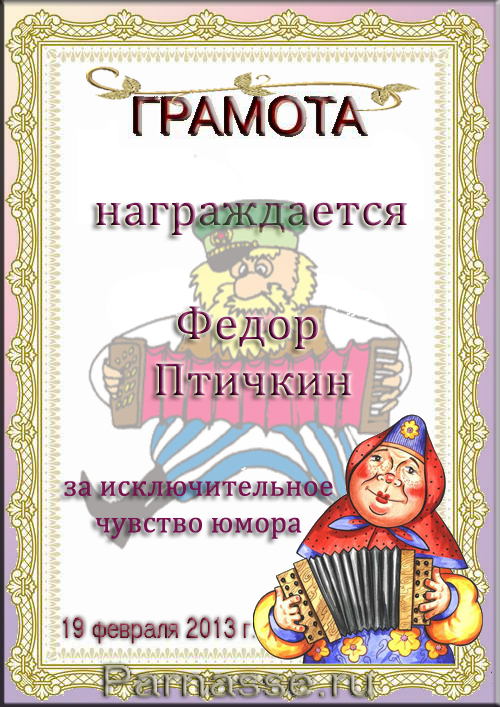 Похвальная грамота за 4 место в конкурсе лимериков № 26 (10.12.2012 г.)