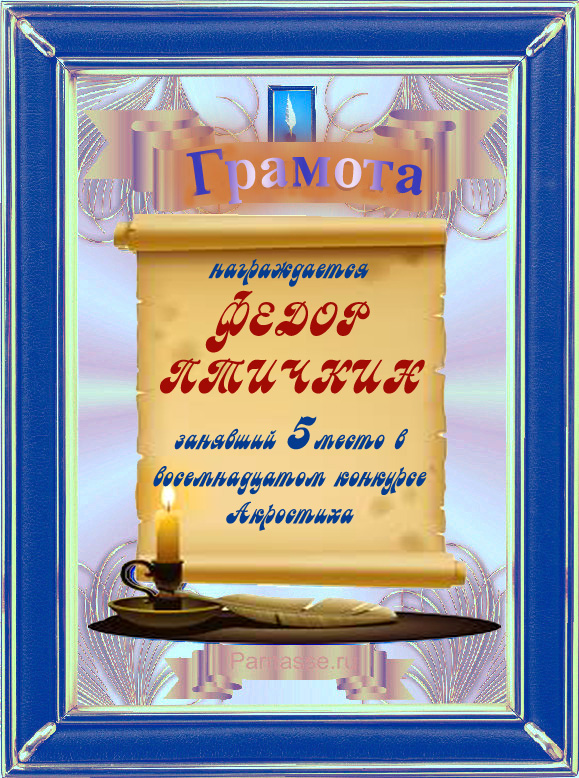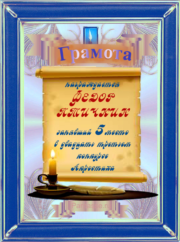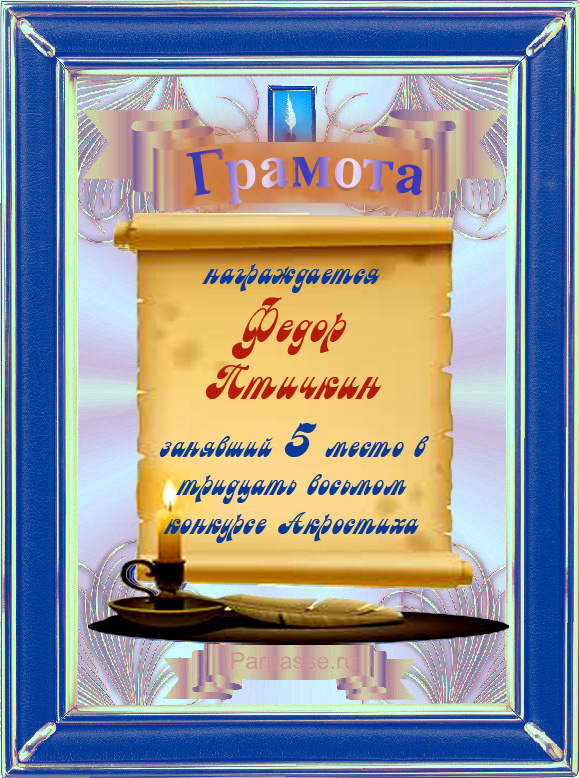 Диплом победителю в конкурсах Акростиха в честь пятилетия конкурса Акростиха!