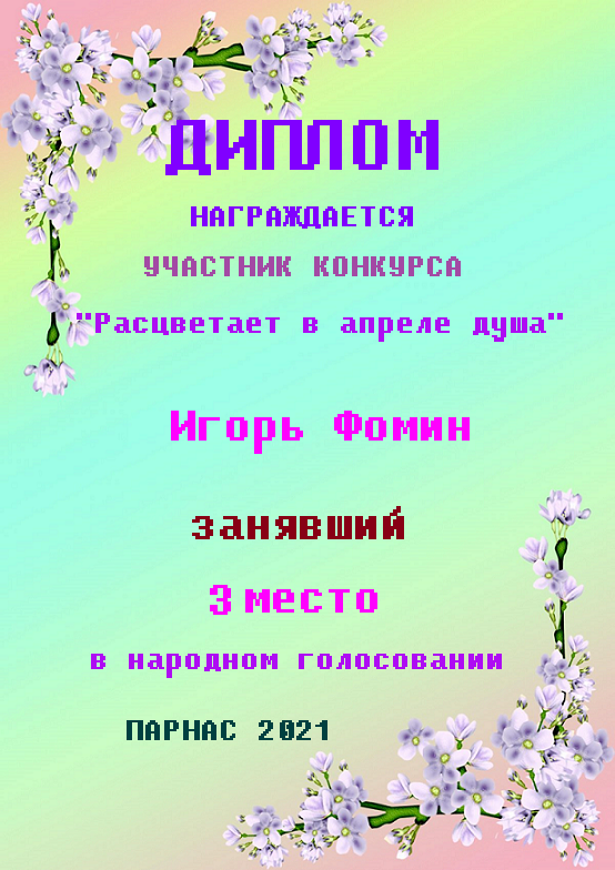 Третье место в народном голосовании по итогам конкурса "Расцветает в апреле душа"