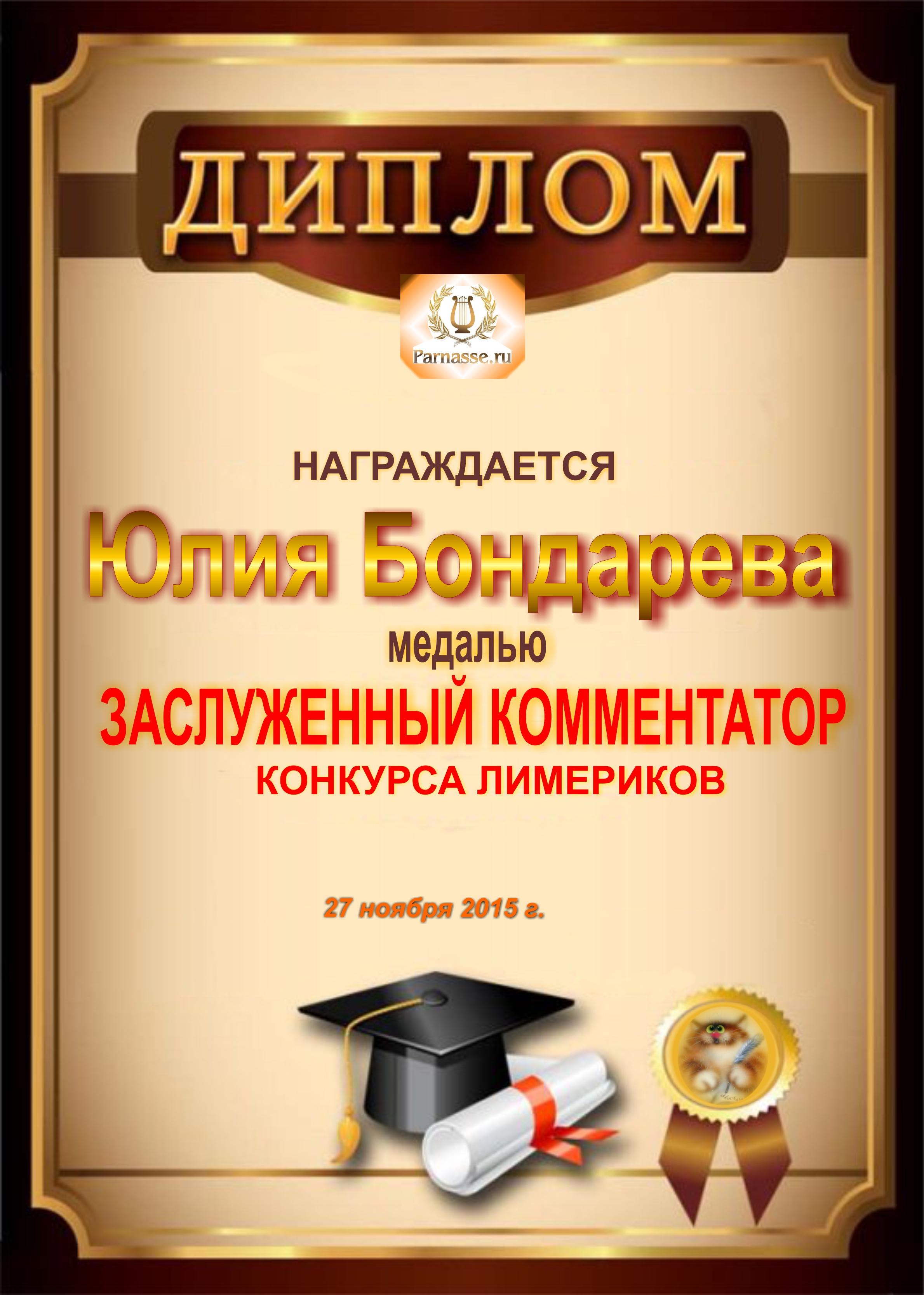 Диплом "Заслуженный комментатор конкурса лимериков" (27.11.2015г.)