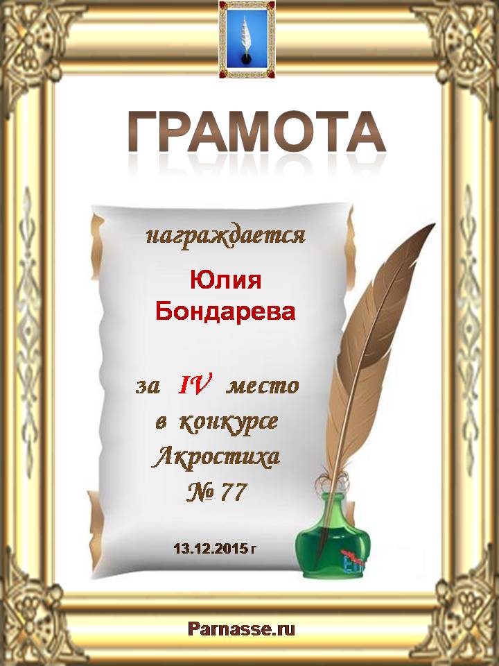 Грамота за 4 место в 77 конкурсе АКРОСТИХА!