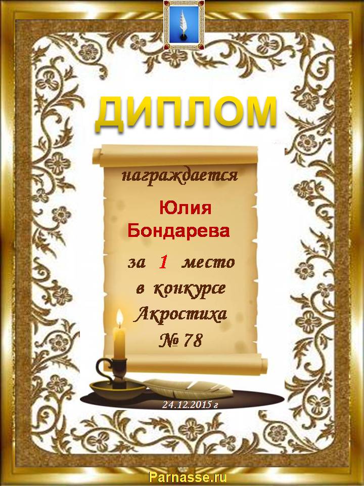 Диплом за 1 место в 78 конкурсе АКРОСТИХА!