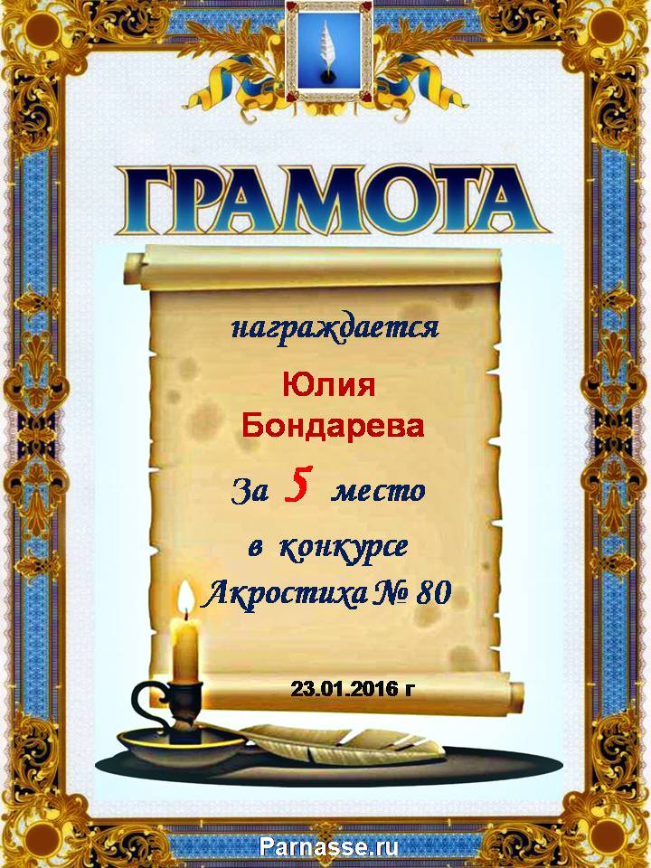 Грамота за 5 место в 80 конкурсе АКРОСТИХА!