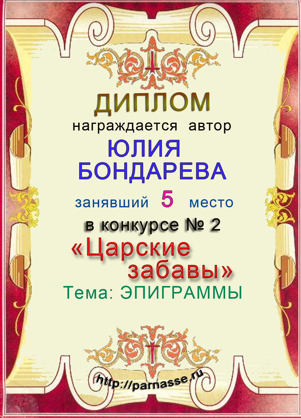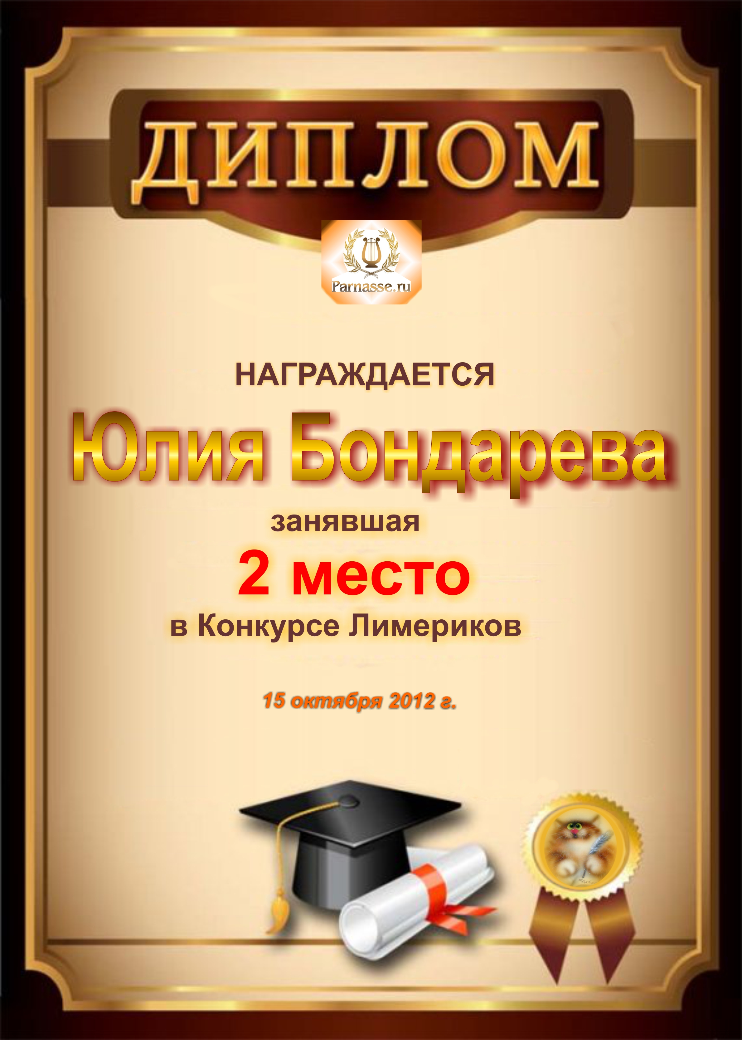 Диплом за победу и 2 место в Конкурсе лимериков № 22 (15.10.2012 г.)