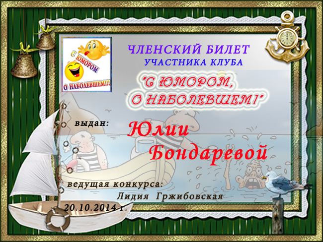 Диплом за победу и 3 место в дополнительной номинации конкурса лимериков № 55+ (16.06.2014г.)