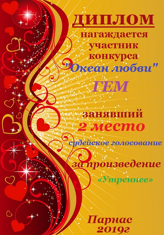 Второе место в конкурсе "Океан любви", судейское голосование. Поздравляем с прекрасной победой!