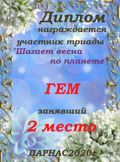 Второе место по итогам триады конкурсов «Шагает весна по планете ". Поздравляем с прекрасной победой!
