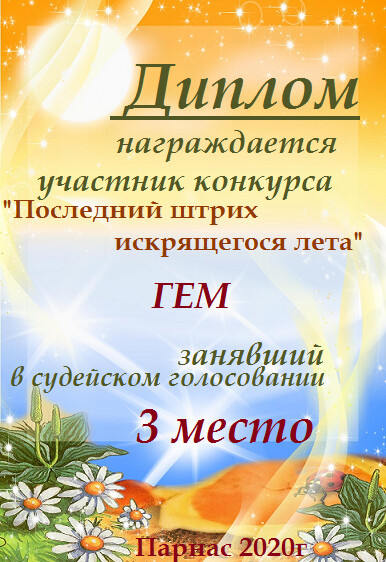 Второе место по итогам конкурса «Июль - ты моё вдохновение", судейское голосование. Поздравляем с прекрасной победой!