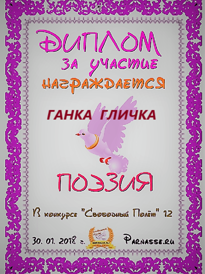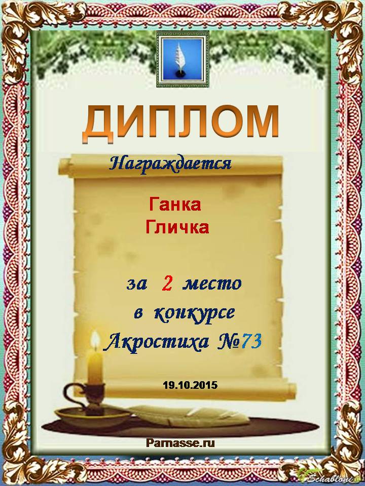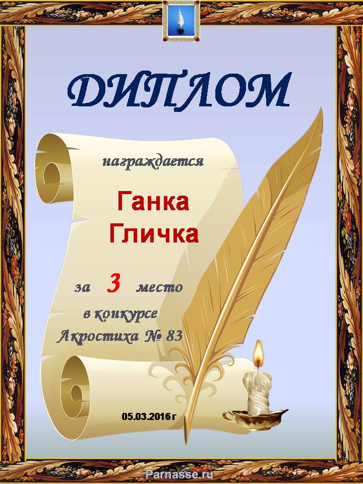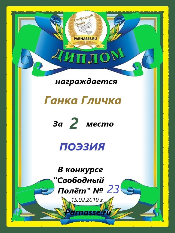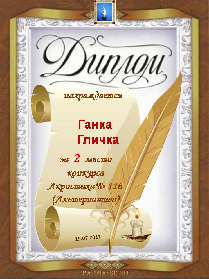 Диплом за 2 место в 116 конкурсе АКРОСТИХА (Альтернатива)! ПОЗДРАВЛЯЮ!