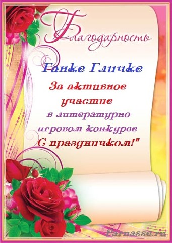 Номинация "Лучшее стихотворное поздравление Парнасу".Уважаемая Ганка!