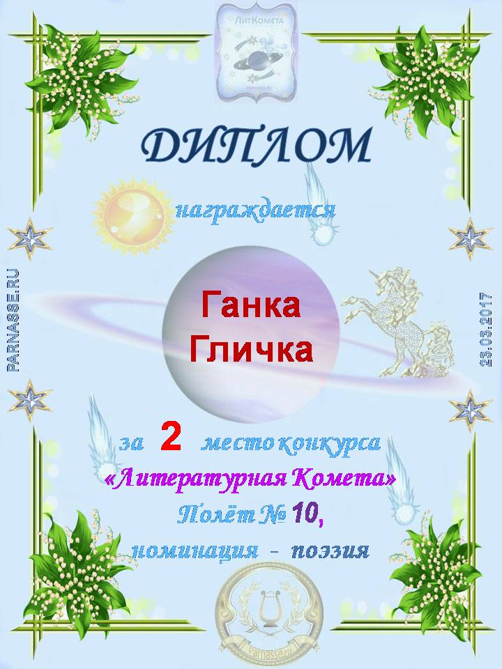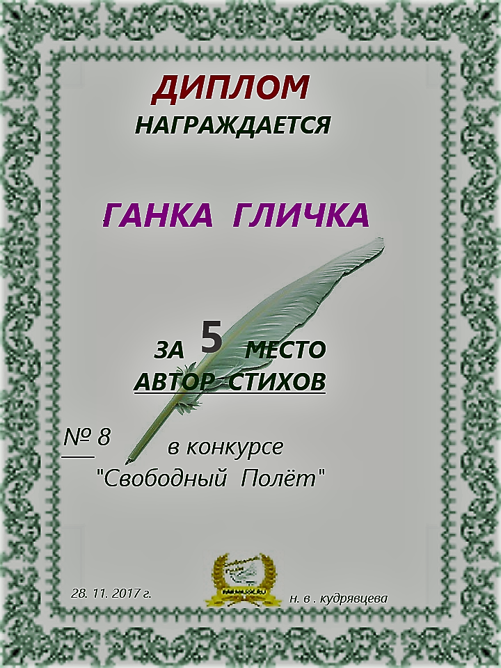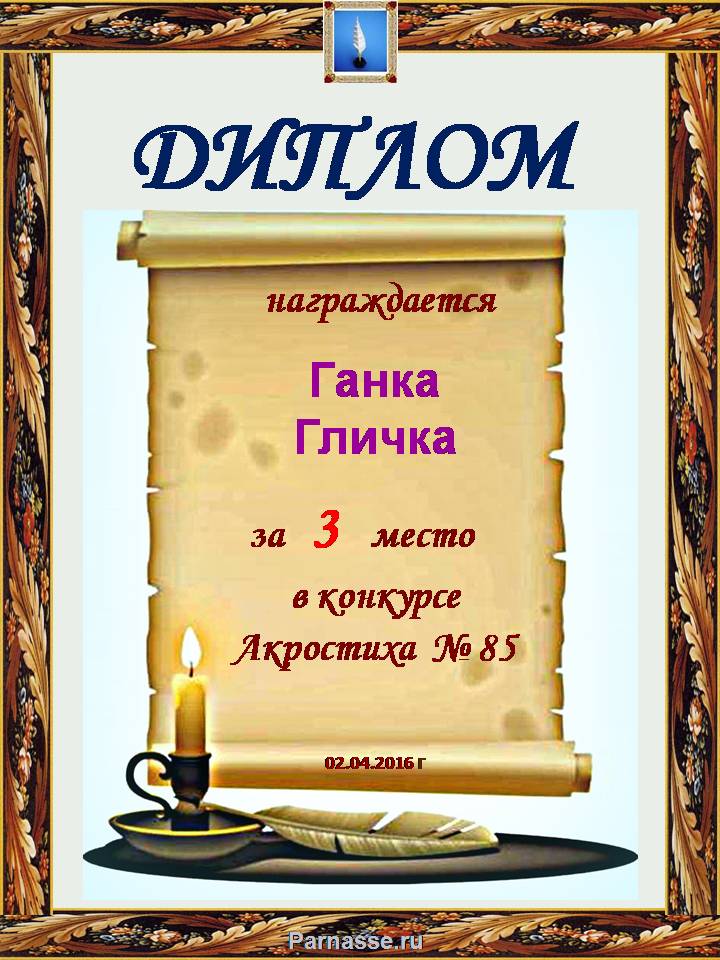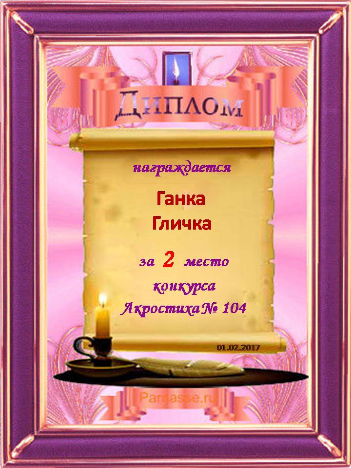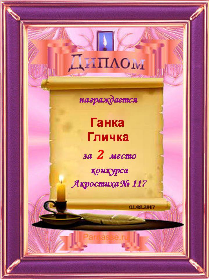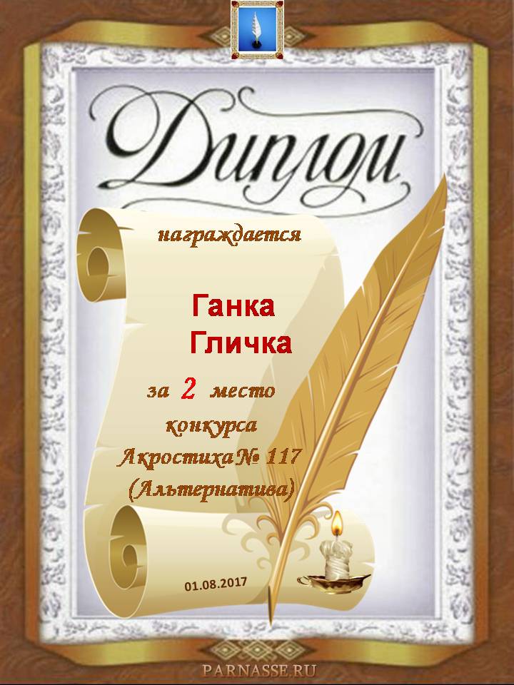 Диплом за 2 место в 117 конкурсе АКРОСТИХА (Альтернатива)! ПОЗДРАВЛЯЮ!