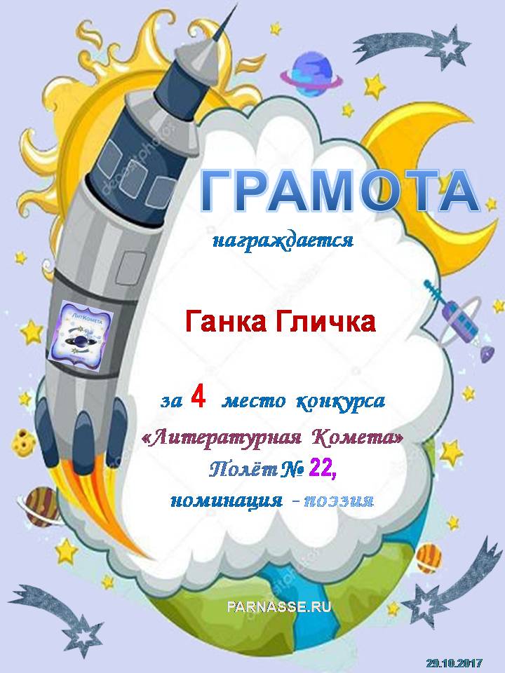 Грамота за 4 место в 141 конкурсе АКРОСТИХА (Альтернатива)! ПОЗДРАВЛЯЮ!