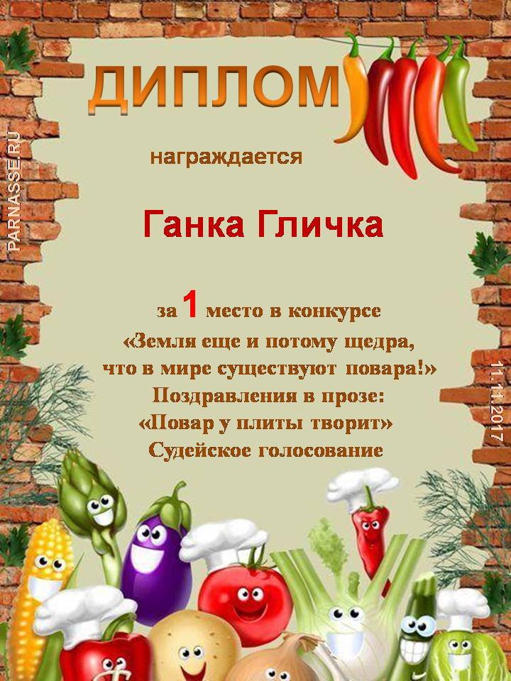 Поздравляем с 1 местом! Номинация: Поздравления в прозе: Повар у плиты творит! - судейское голосование.