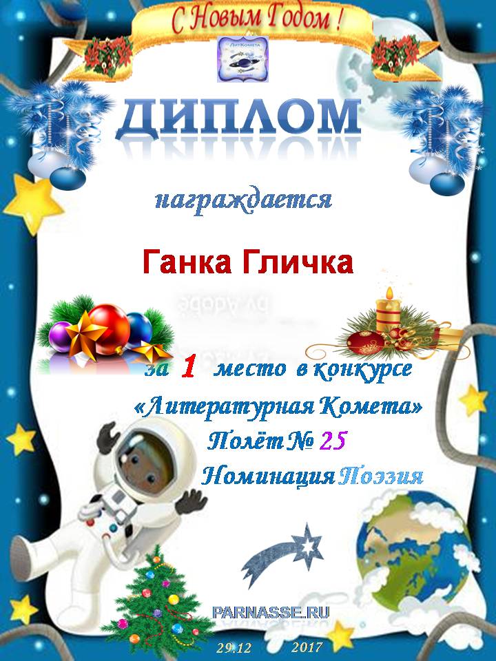 За участие в поэтическом конкурсе "Декабрь – чудес и новогодних сказок время", номинация "Декабрьская сказка". Пусть счастье, любовь, здоровье и удача будут вашими верными спутниками каждый день из года в год!