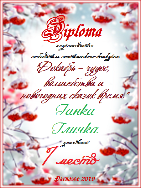 Первое место в поэтическом конкурсе "Декабрь – чудес и новогодних сказок время". Поздравляем!