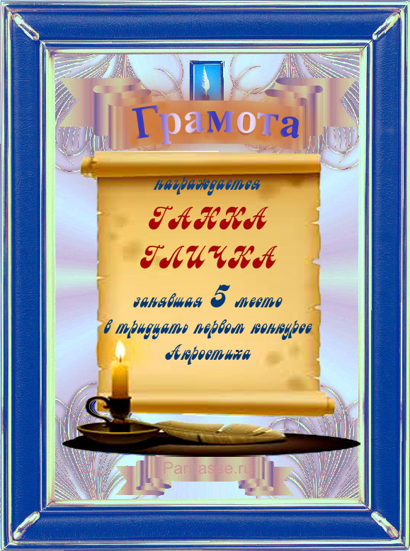 Грамота за 5 место в 122 конкурсе АКРОСТИХА (Альтернатива)! ПОЗДРАВЛЯЮ!