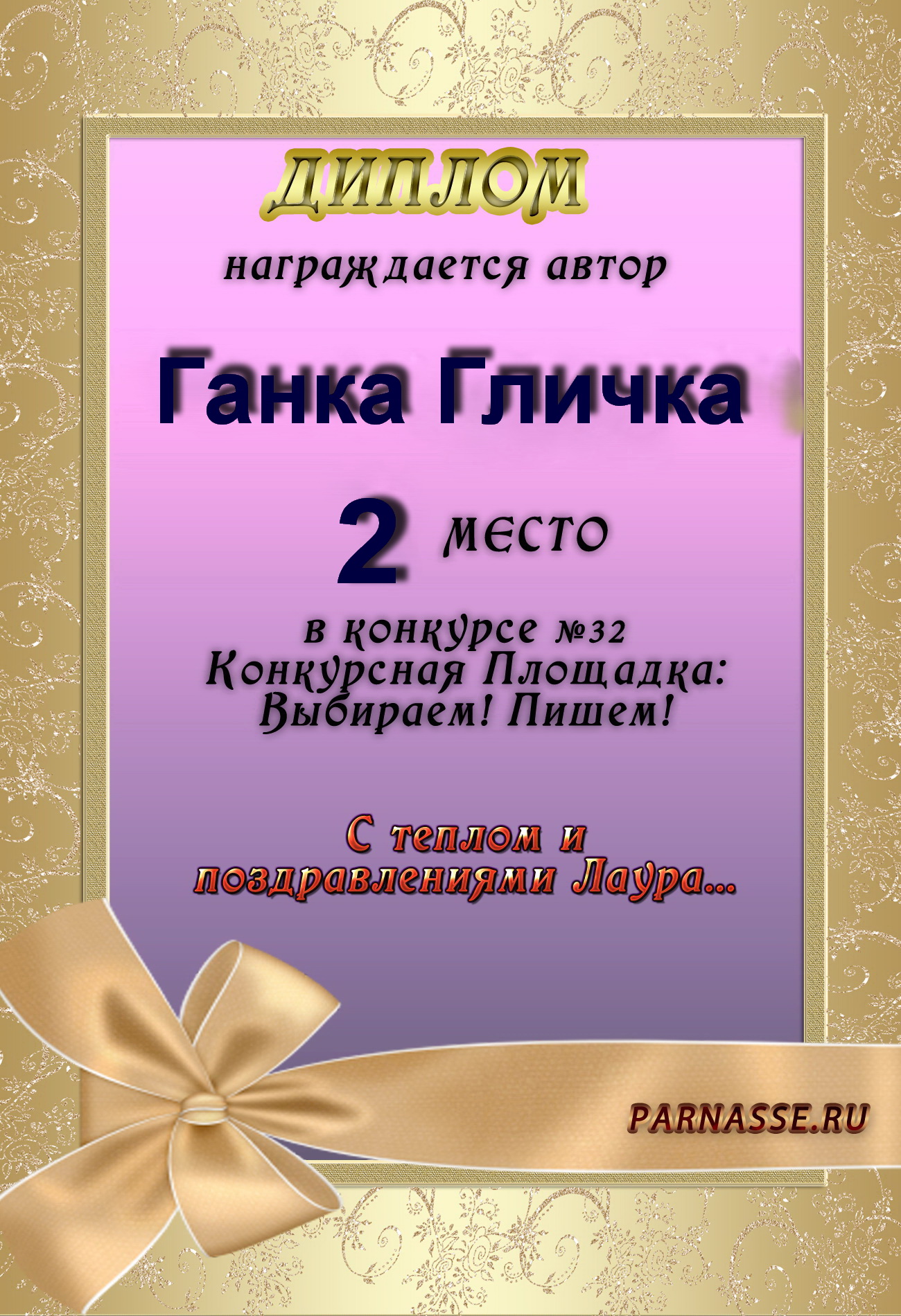Диплом за 2 место в юбилейном конкурсе АКРОСТИХА № 100 (Альтернатива)! ПОЗДРАВЛЯЮ!