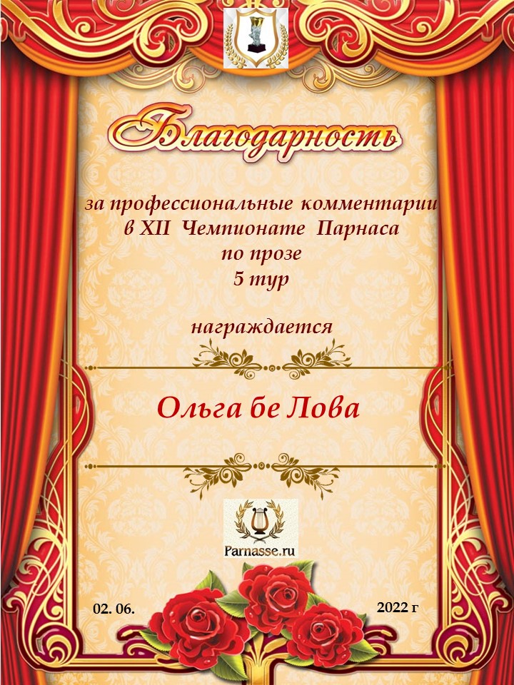 Уважаемая Ольга! Мы искренне тронуты Вашей искренней материальной помощью Парнасу! Мы рады, что Вы с нами, что "Парнас" стал для Вас чем-то большим, чем просто сайт! Спасибо Вам большое, будьте всегда здоровы и счастливы!