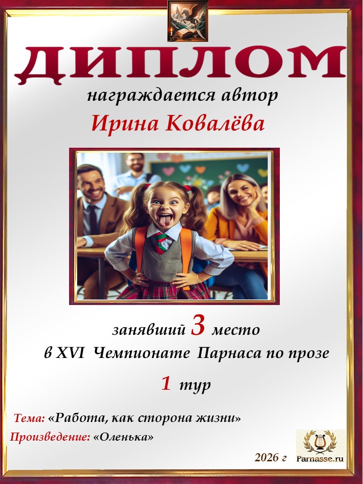 ДИПЛОМ ЗА ТРЕТЬЕ МЕСТО В КОНКУРСЕ "ЛЮБОПЫТСТВО". Проза