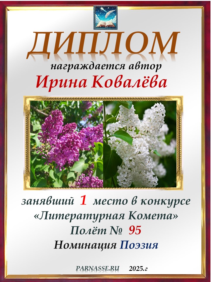 Диплом за 1 место в конкурсе "ЛитКомета"- Полёт № 7 - поэзия