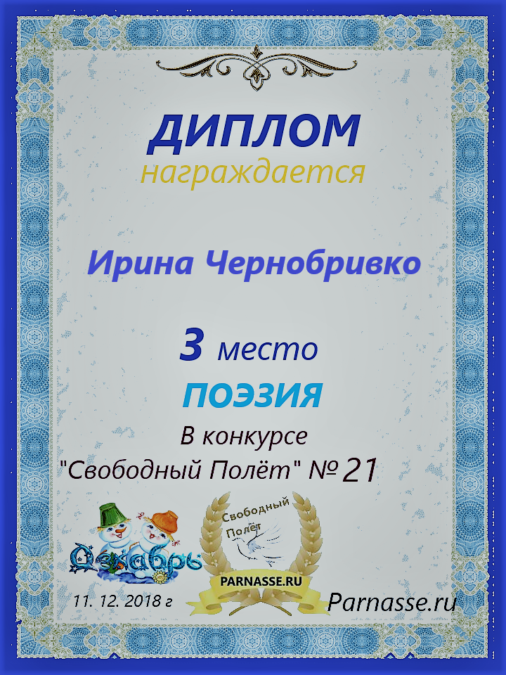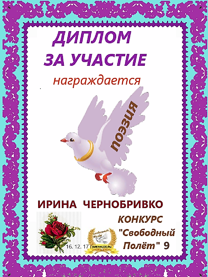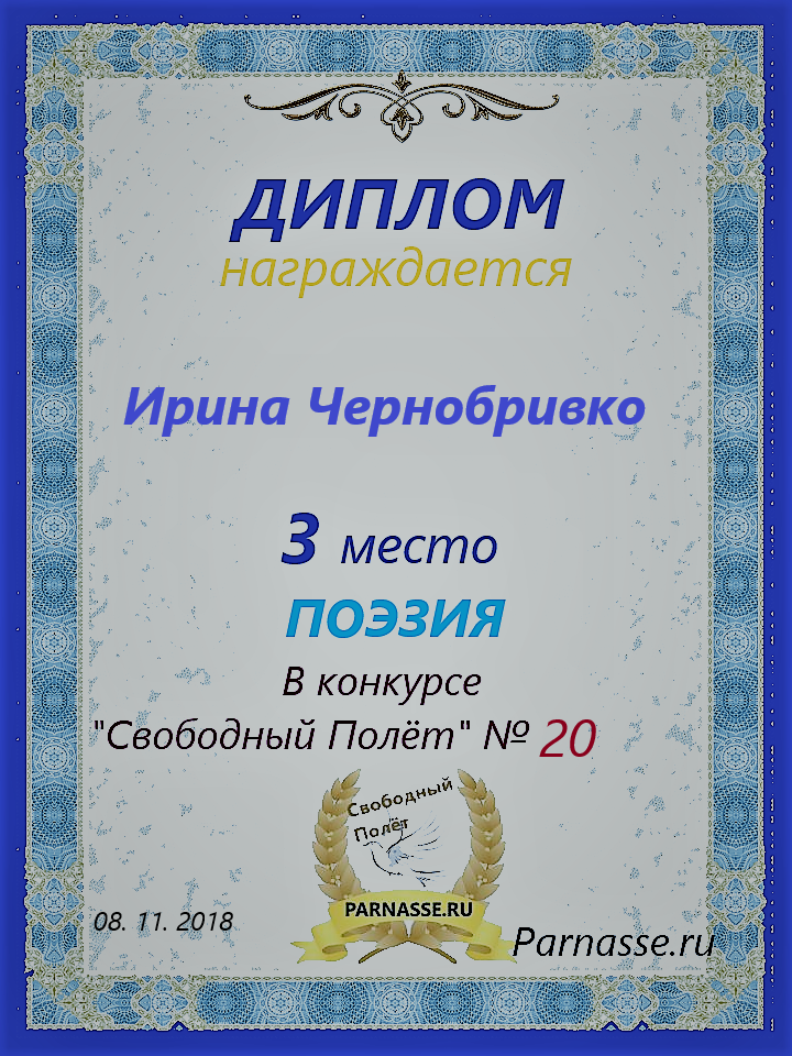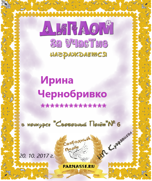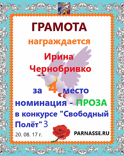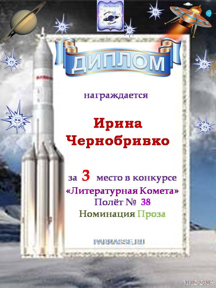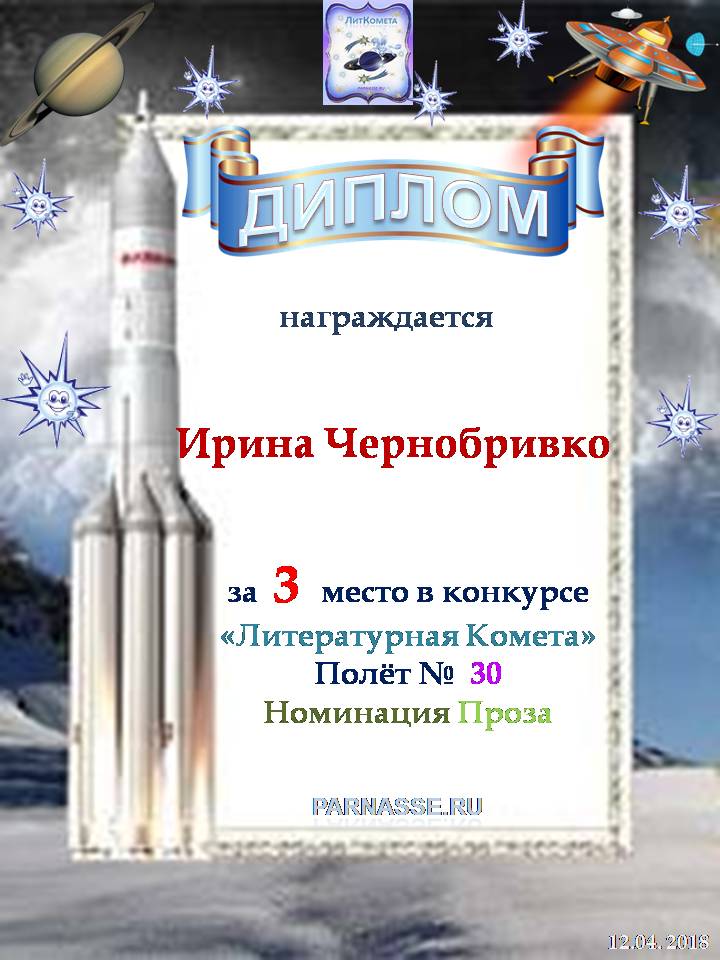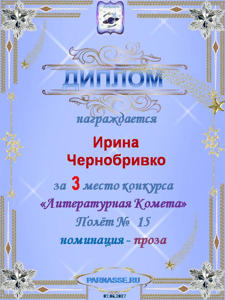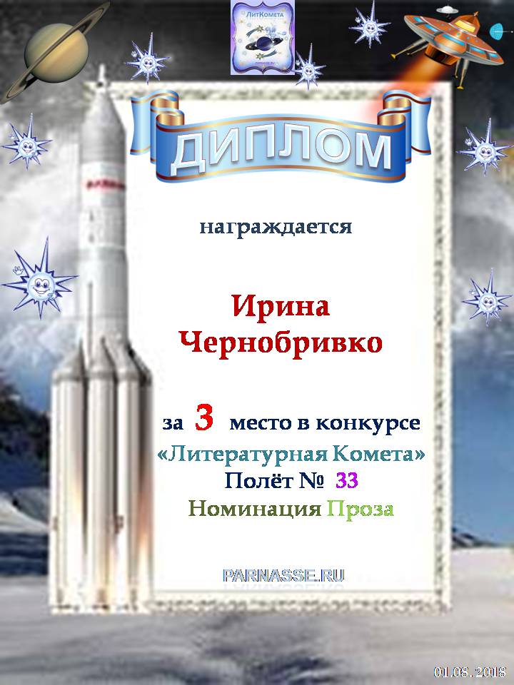 Диплом за 3 место "Полёт № 16", номинация - проза. Желаю новых творческих побед!