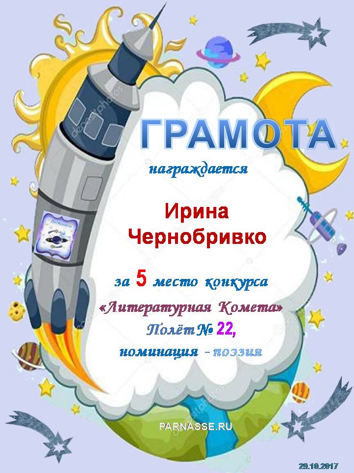 Поздравляю с 5 местом в конкурсе "ЛитКомета" Полёт № 28 - номинация Поэзия!