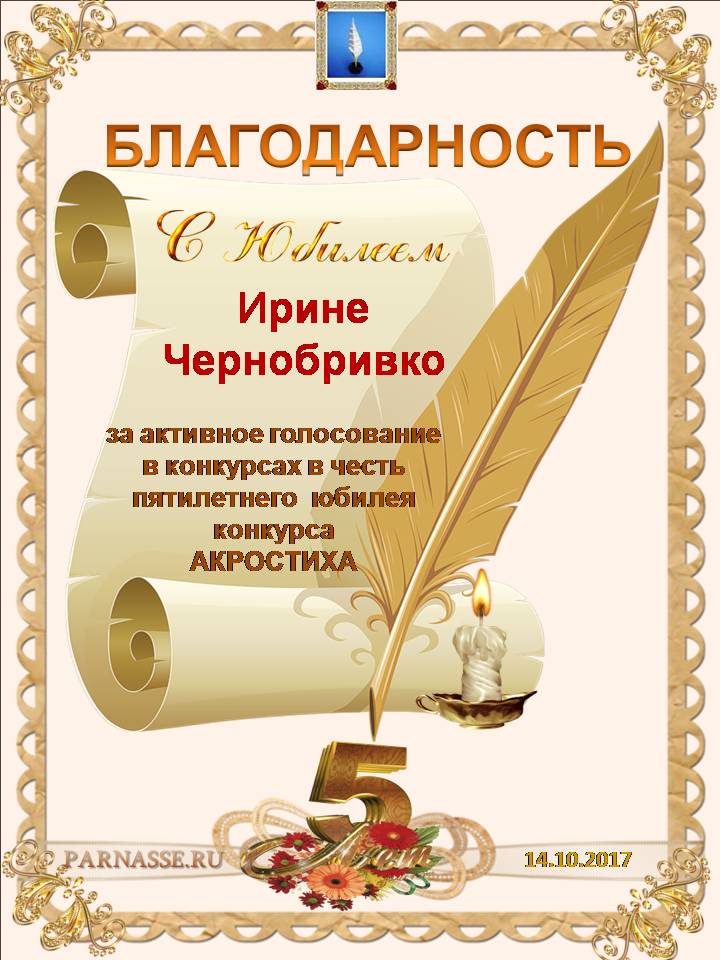 Благодарность за активное голосование в конкурсах Акростиха в связи с пятилетним юбилеем конкурса Акростиха!